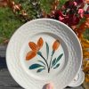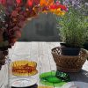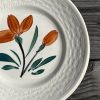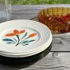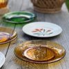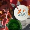 6 assiettes à dessert dépareillées comprenant 3 belles assiettes fleuries et 3 assiettes en verre coloré (2 ambrées et 1 verte)