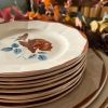 Très belle assiette pour vos desserts de l’automne ! Cette assiette du service Digoin Sarreguemines ancien est d’une jolie teinte beige, décorée d’une rose marron à feuilles bleutées. On aime beaucoup ses couleurs automnales et son liseré marron.