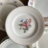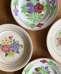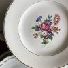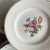 Cette belle assiette plate en faïence Salins est très joliment décorée d’un bouquet fleuri multicolore au centre et de liserés dorés.