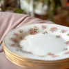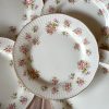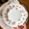 Coup de cœur ! Cette assiette à dessert en porcelaine anglaise est toute en poésie et en douceur. On craque pour ses jolis dessins de petites fleurs roses et la finesse de sa porcelaine aux bords travaillés.