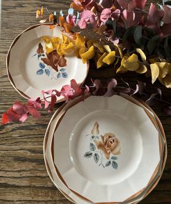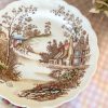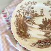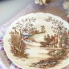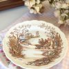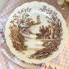 Superbe assiette à dessert anglaise vintage ! Coup de coeur pour cette assiette à gâteau en porcelaine anglaise. On adore sa forme ronde festonnée. Son joli décor est rempli de poésie, une nature fleurie et sauvage dans une campagne anglaise où arrive une diligence. L’assiette parfaite pour un teatime réussi !