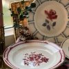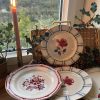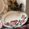 – 1 assiette modèle CEVENNES : motifs floraux rouges, bel état avec quelques rayures et toutes petites ébréchures sur le tour (Sarreguemines)