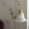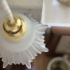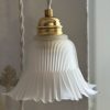 Coup de cœur pour ce beau verre travaillé, strié sur le dessus et en jolie forme corolle au bout. Son verre légèrement givré laisse passer une douce lumière pour créer un coin cosy parfait.