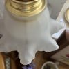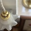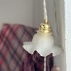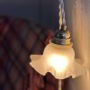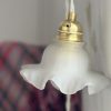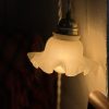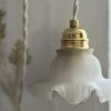 On aime ce beau verre ancien, à la fois simple et très travaillé ! Son verre givré et légèrement opaque laisse passer une douce lumière pour créer un coin cosy parfait. Les bords dentelés et plissés de cette baladeuse lui apportent beaucoup de charme, on adore !