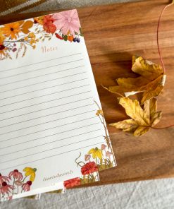 Un bloc-notes fleuri aux couleurs de l’automne ! Idéal pour déposer vos listes d’idées ou de tâches à faire, tout au long de la journée, il vous suivra partout avec son format ultra pratique. Ce bloc-notes automnal met à l’honneur les dahlias, cette superbe fleur qui étale sa floraison jusqu’à la fin de l’automne.