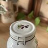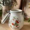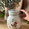 Un joli pot vintage ! Cet ancien bocal, avec couvercle et joint, a un joli décor framboises et mûres. On aime beaucoup sa forme arrondie et ses motifs de baies qui nous rappellent les joies de la cueillette. Il décorera à merveille votre intérieur !