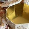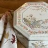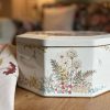 Une magnifique boite fleurie faite en Angleterre ! On aime beaucoup la jolie forme octogonale de cette grande boite en métal vintage.