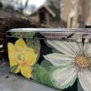 Une très jolie boite vintage en métal faite en Angleterre ! Avec son décor à grosses fleurs sur fond noir, elle sera parfaite pour égayer un coin bureau par exemple, ou n’importe quelle pièce de la maison tant elle peut être utilisée de diverses façons.