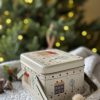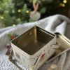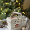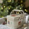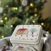 Une boite en métal trop mignonne ! On adore sa petite taille et sa jolie forme avec ses 2 anses à rabat. Elle a un joli décor de maison avec son jardin, et des fleurs au motif point de croix.