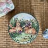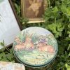 Une boite ronde trop mignonne ! On adore son joli décor de lapins au jardin et sa jolie couleur verte. Une très belle boite vintage et en très bel état !