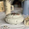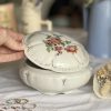 Une belle boite en porcelaine avec son couvercle fleuri. Cette boite vintage fera une très belle boite à bijoux, mais pourra servir dans toutes les pièces de la maison, à vous de l’utiliser comme vous le voulez !