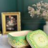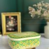 Une jolie boite en métal vintage ! On adore son joli décor de petites fleurs jaunes sur fond vert, comme une prairie fleurie.