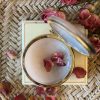 Une belle boite en albatre dégradé de noir à rose. Cette boite est décoré de fleurs claires et réhaussée d’un cerclage doré pour son ouverture à charnière.