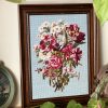 Un magnifique canevas encadré ! On adore les jolis tons colorés de son bouquet et la douceur de son fond bleu clair.