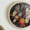 Un magnifique cadre rond vintage ! Ce cadre de fleurs séchées est original avec son biais velours blanc. Il fera bel effet pour votre déco vintage avec ses belles fleurs séchées sur fond noir.