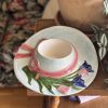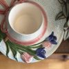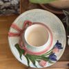 Ce chapeau déco vintage est en superbe état. A noter un très petit éclat sur les tiges vertes et une tâche à l’intérieur de la partie cache-pot.