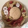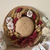 Magnifique chapeau de paille vintage ! Il est décoré de jolies fleurs séchées et d’un nœud en raphia. Ce chapeau de taille moyenne sera parfait pour votre déco d’été bohème et poétique.
