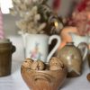 Cette petite coupelle en grès tâcheté a une jolie forme originale avec ses deux anses.