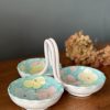 Une très belle coupelle pour l’apéritif ! On adore ses jolies teintes pastels et son motif grosses fleurs. Avec ses trois compartiments, elle sera parfaite pour y mettre de jolis apéritifs.