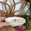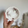 Coup de cœur pour cette coupelle forme coquillage ! En porcelaine anglaise Bone China, porcelaine fine et très blanche, cette coupelle a de très beaux décors fleuris et un magnifique liseré doré.