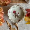 Une très belle coupelle en porcelaine ! On aime beaucoup ses dessins de roses en boutons et l’élégance de sa porcelaine en relief.