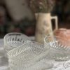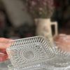 Cette coupelle rectangulaire Duralex pour Huile Lesieur est un ancien beurrier des années 70. Son verre ciselé en fleur de tournesol est magnifique et en très bel état.