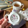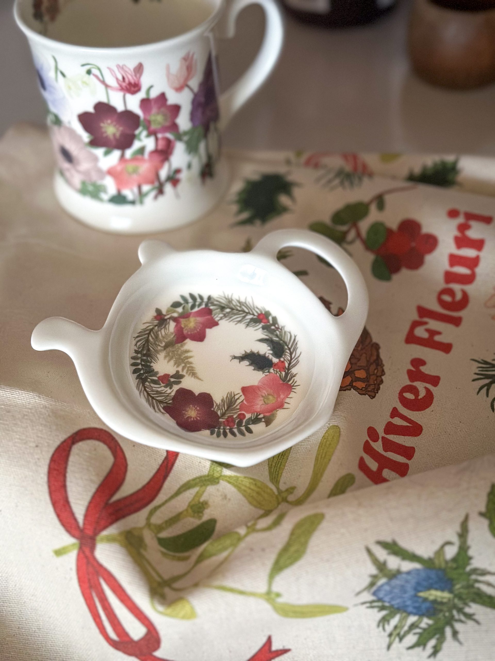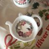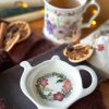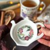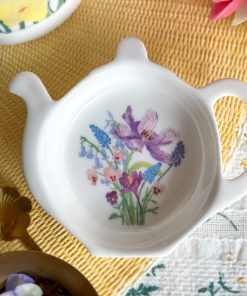 En forme de thĂ©ière, cette coupelle est parsemĂ©e de fleurs d’hiver dĂ©licates et colorĂ©es : hellĂ©bores, sapin, gui… Avec sa forme lĂ©gèrement creuse, elle accueille parfaitement votre sachet de thĂ© ou infuseur. Elle peut mĂŞme servir de petite coupelle Ă  gourmandises ou de coupelle Ă  bijoux.