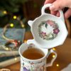 Avec sa jolie couronne d’Hiver fleuri et sa porcelaine anglaise si fine et brillante, cette coupelle Ă  thĂ© accompagnera vos doux moments tea time.