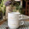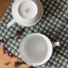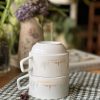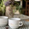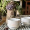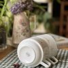Cette grande tasse en porcelaine Bavaria a un joli motif village aux couleurs très douces et pastels, réhaussée d’un fin liseré bleu sur le dessus.