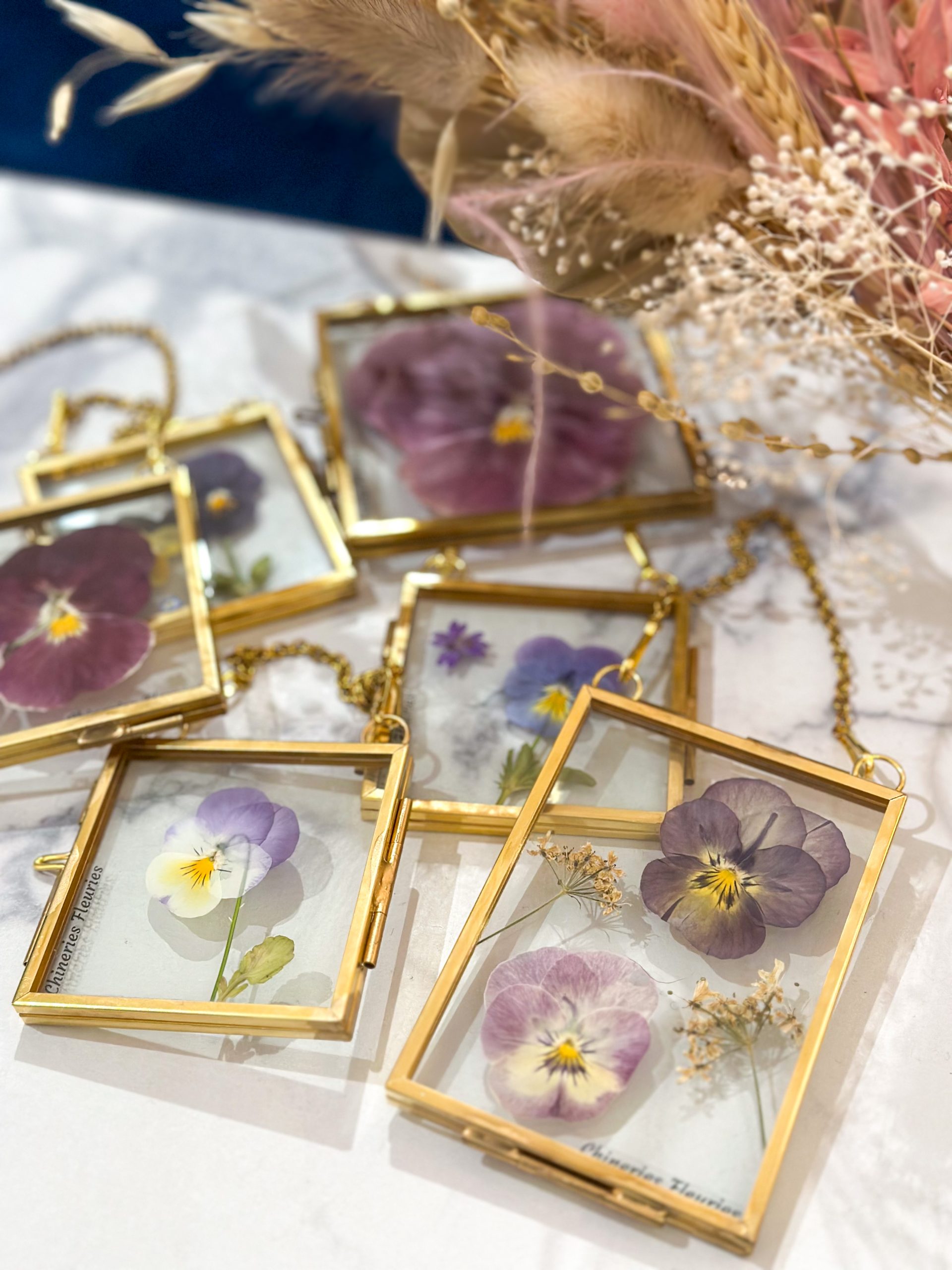 Cet herbier a été réalisé artisanalement avec de vraies fleurs et feuillages ramassés par mes soins, puis mis sous presse pendant 3 à 6 semaines. Chaque herbier est unique.
