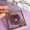 L’herbier Crépuscule est une création unique et artisanale de fleurs pressées, réalisée dans mon atelier lyonnais. Il présente une fleur de pensée d’un joli violet profond, dans un petit cadre en laiton à suspendre.