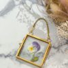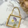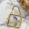 L’herbier Pansy est une création unique et artisanale de fleurs pressées, réalisée dans mon atelier lyonnais. Il présente une fleur de pensée aux tons violet pervenche et blanc, dans un petit cadre en métal doré, à suspendre.