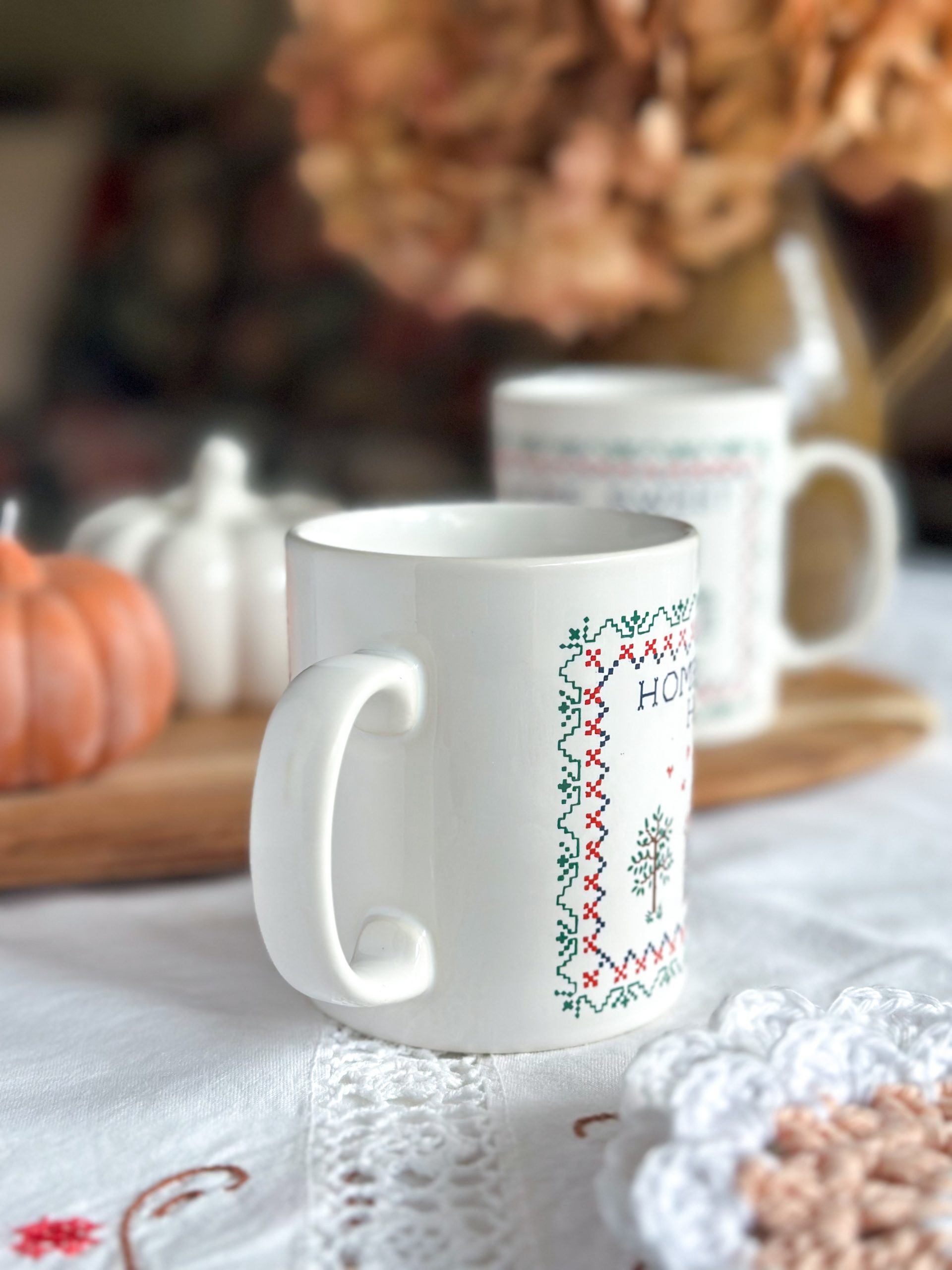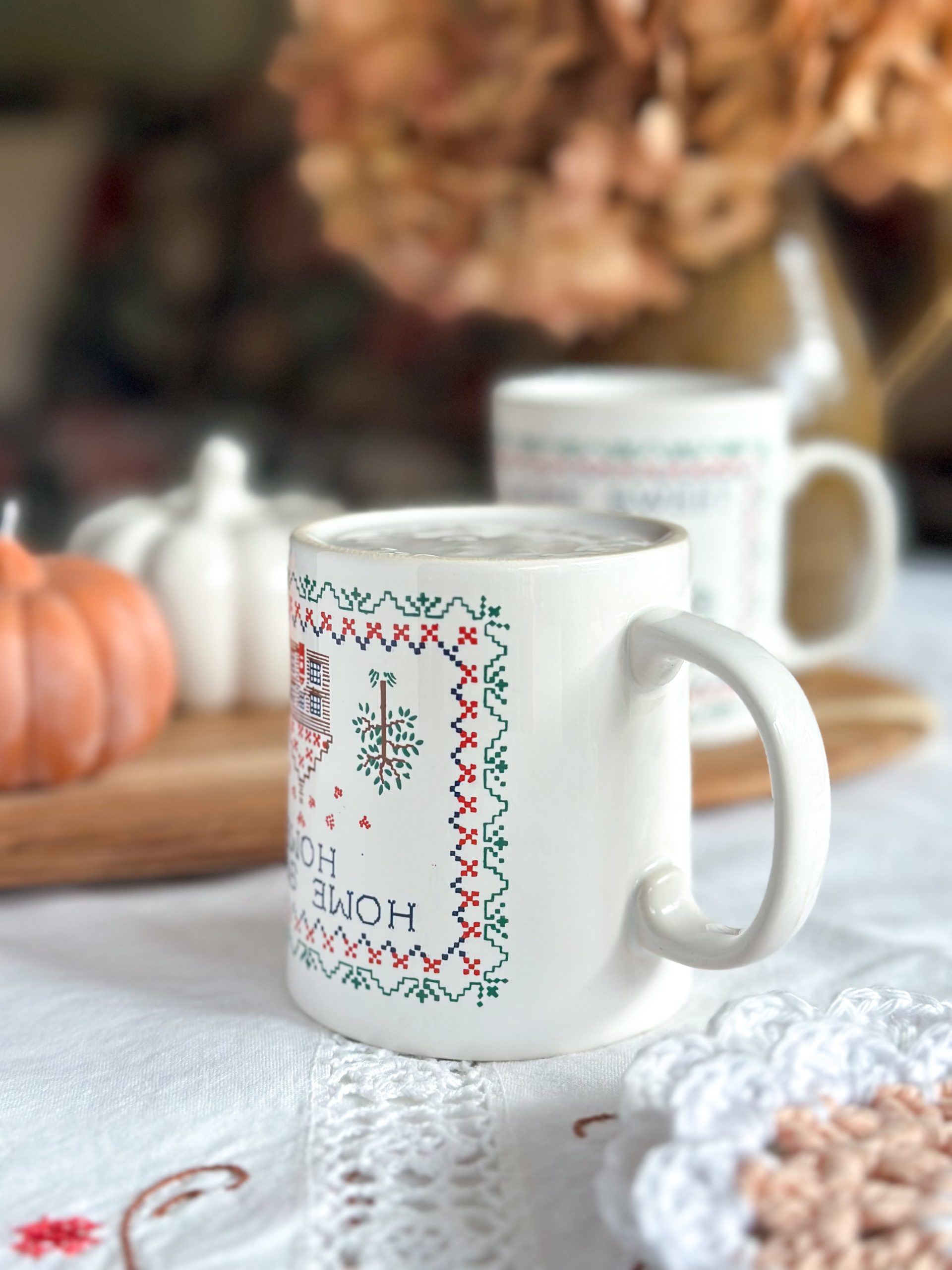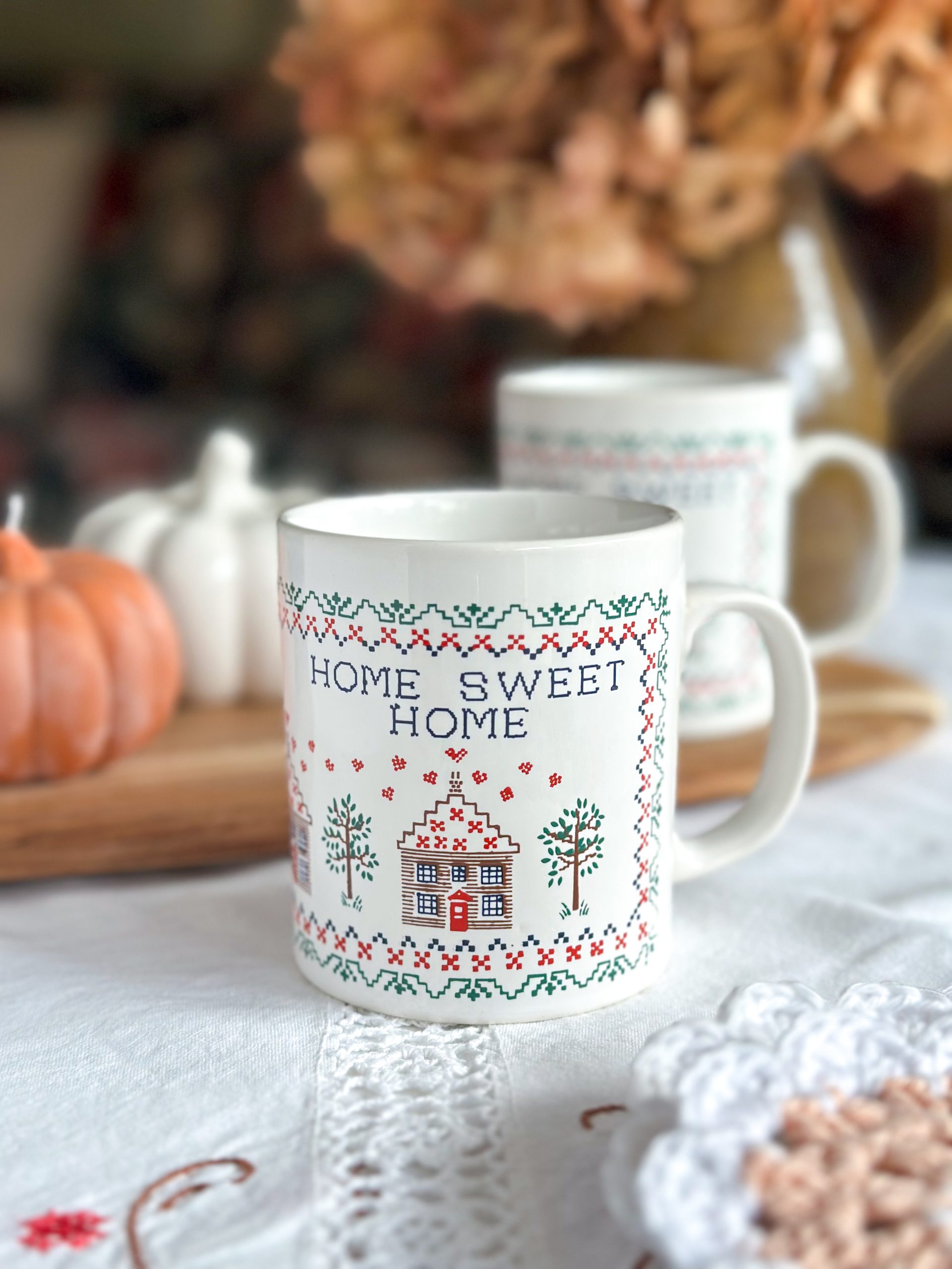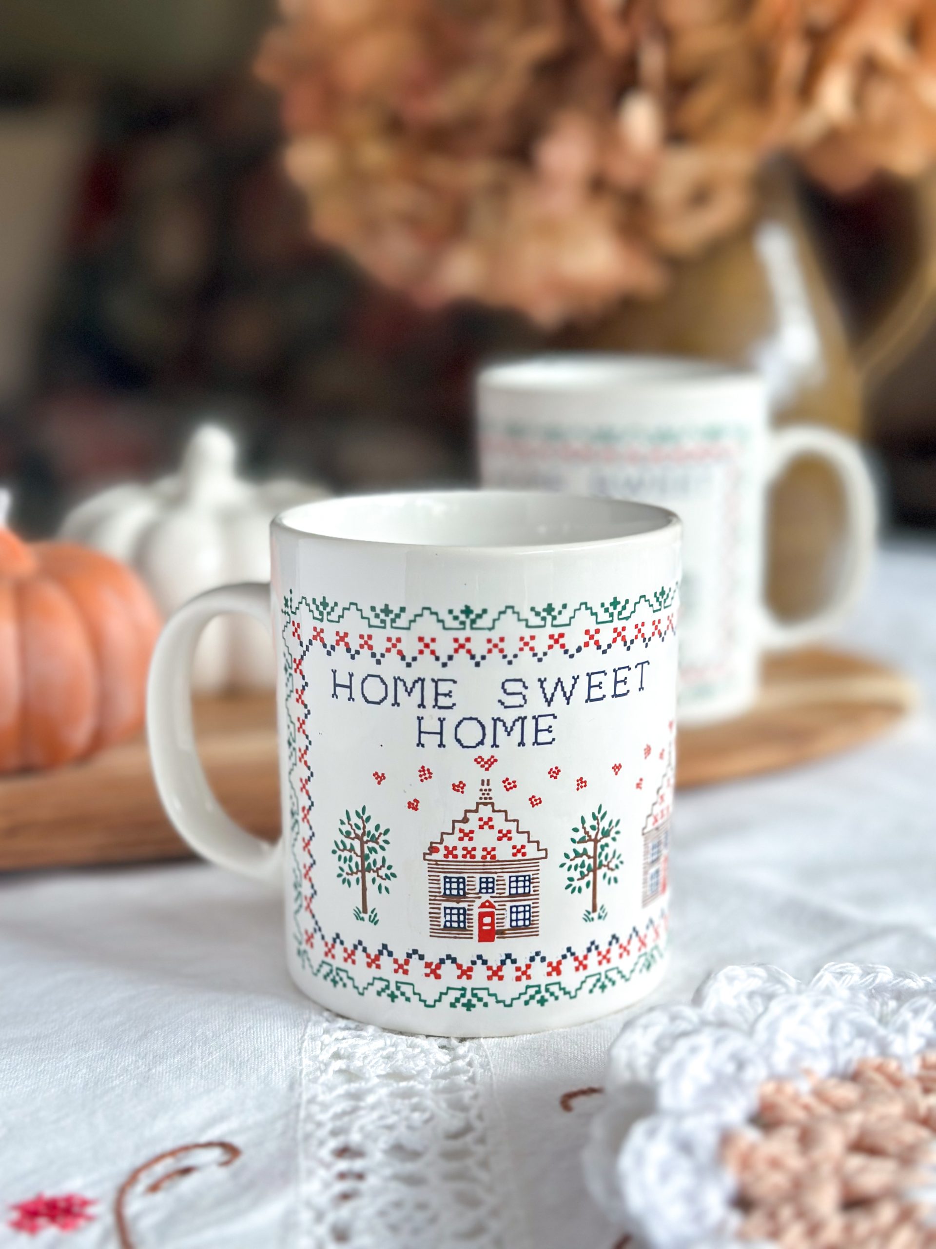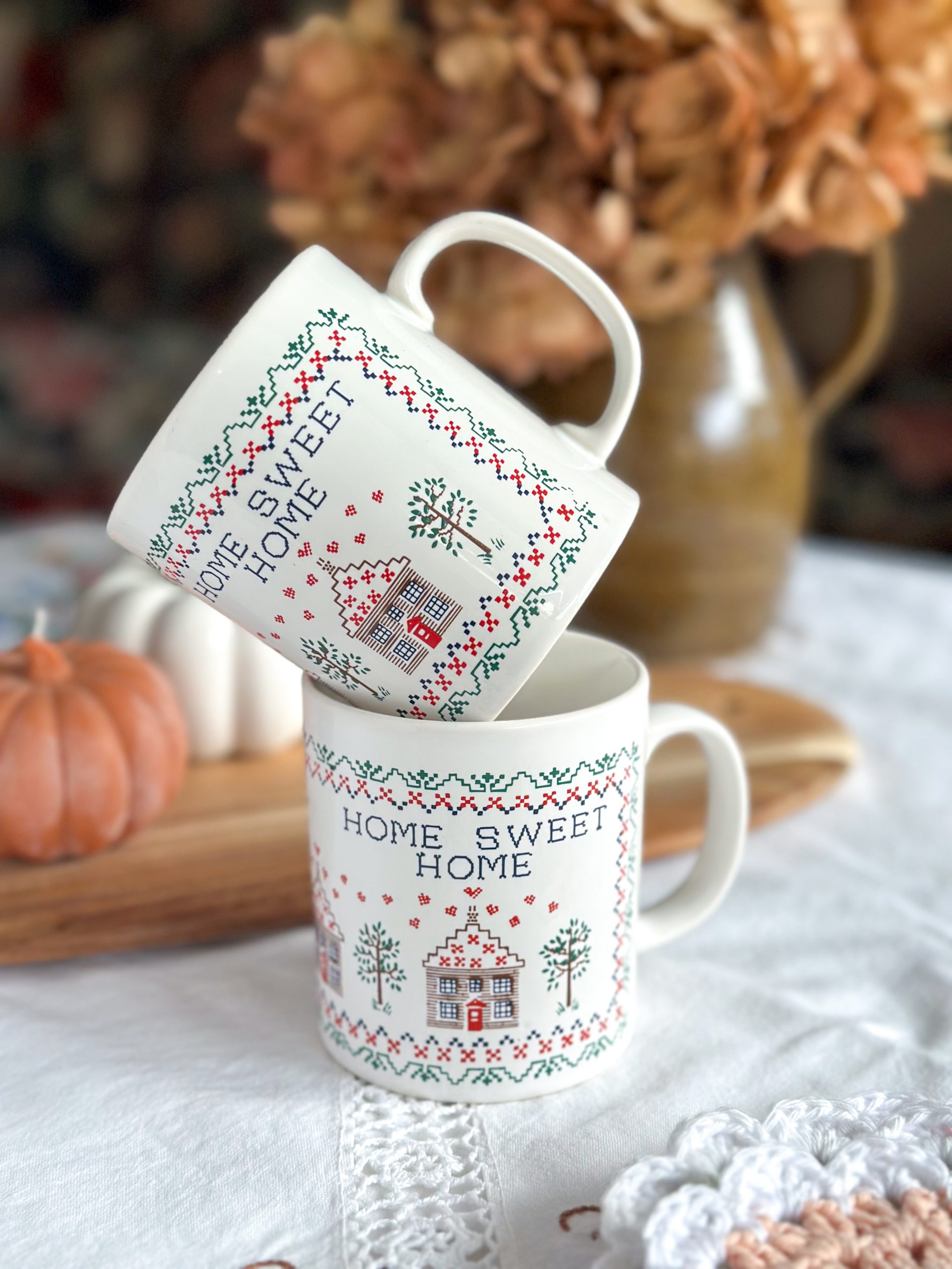 Coup de cœur pour ce mug si cosy ! On adore son joli motif style point de croix et son inscription Home Sweet Home.