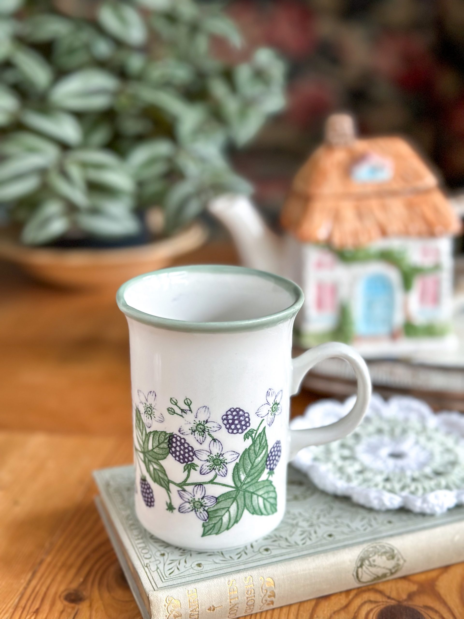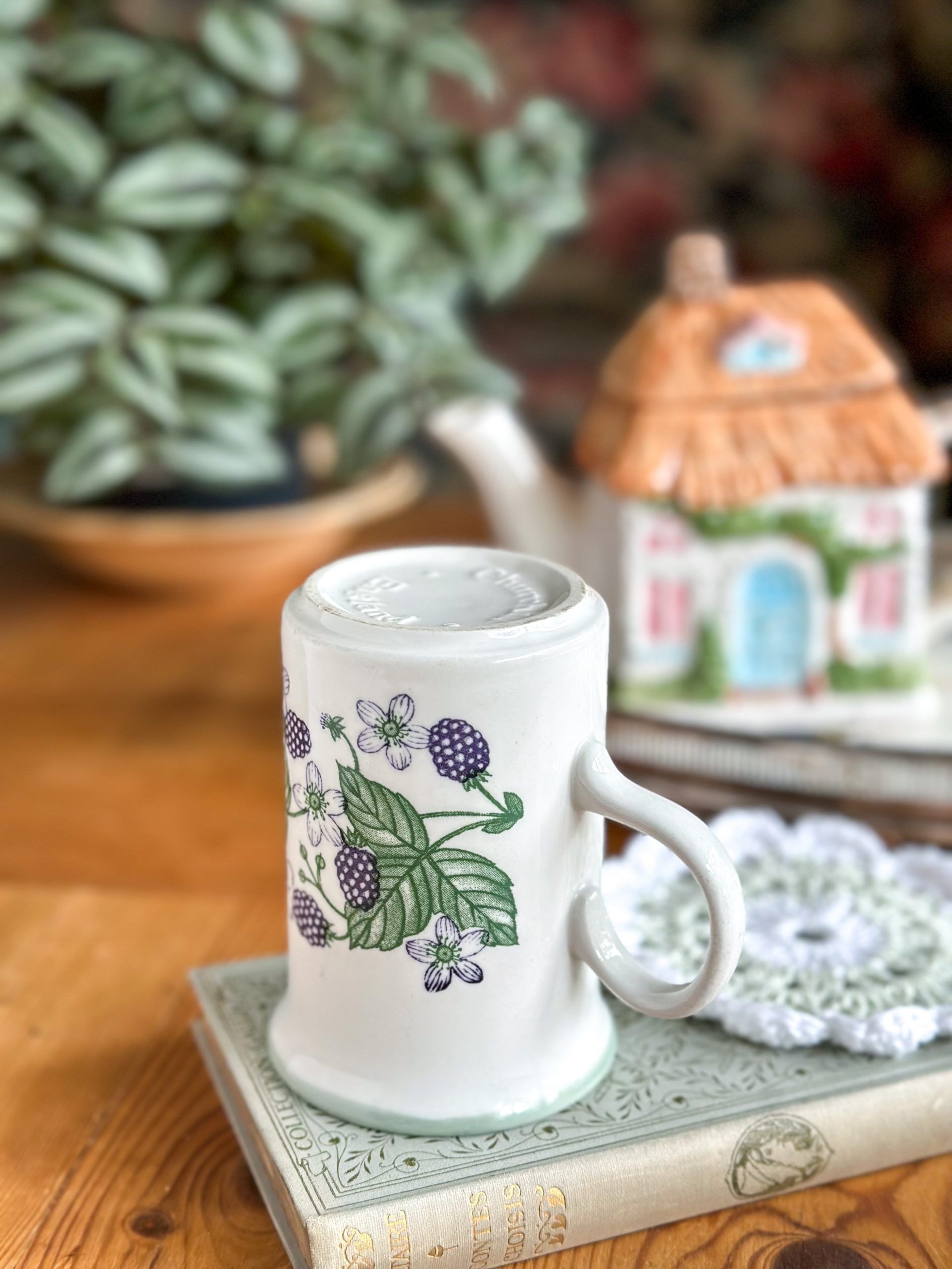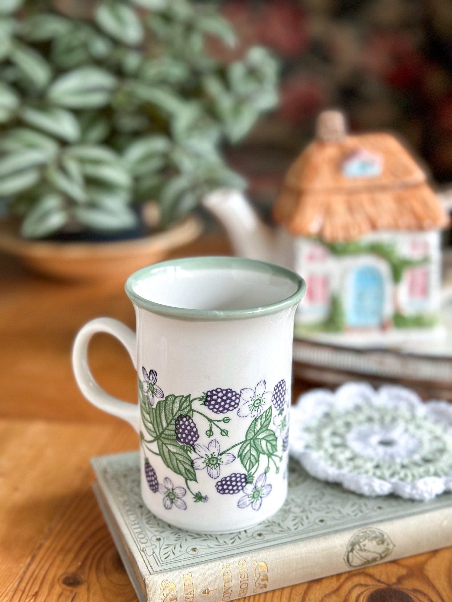 Un joli mug anglais vintage ! On aime beaucoup son joli décor avec des mûres aux tons bleus et leurs feuillages. Un mug qui deviendra votre chouchou pour les pauses thé ou café !