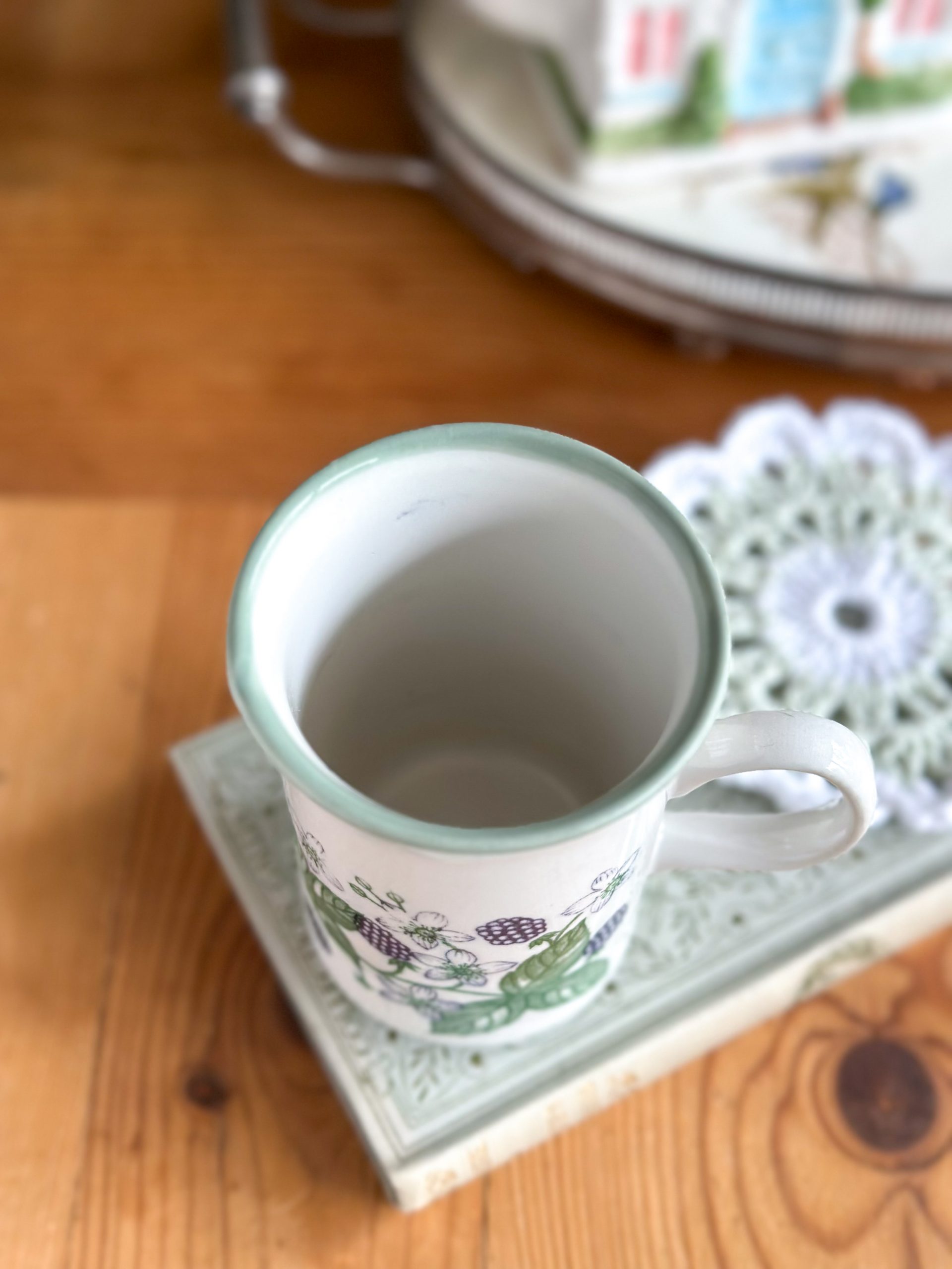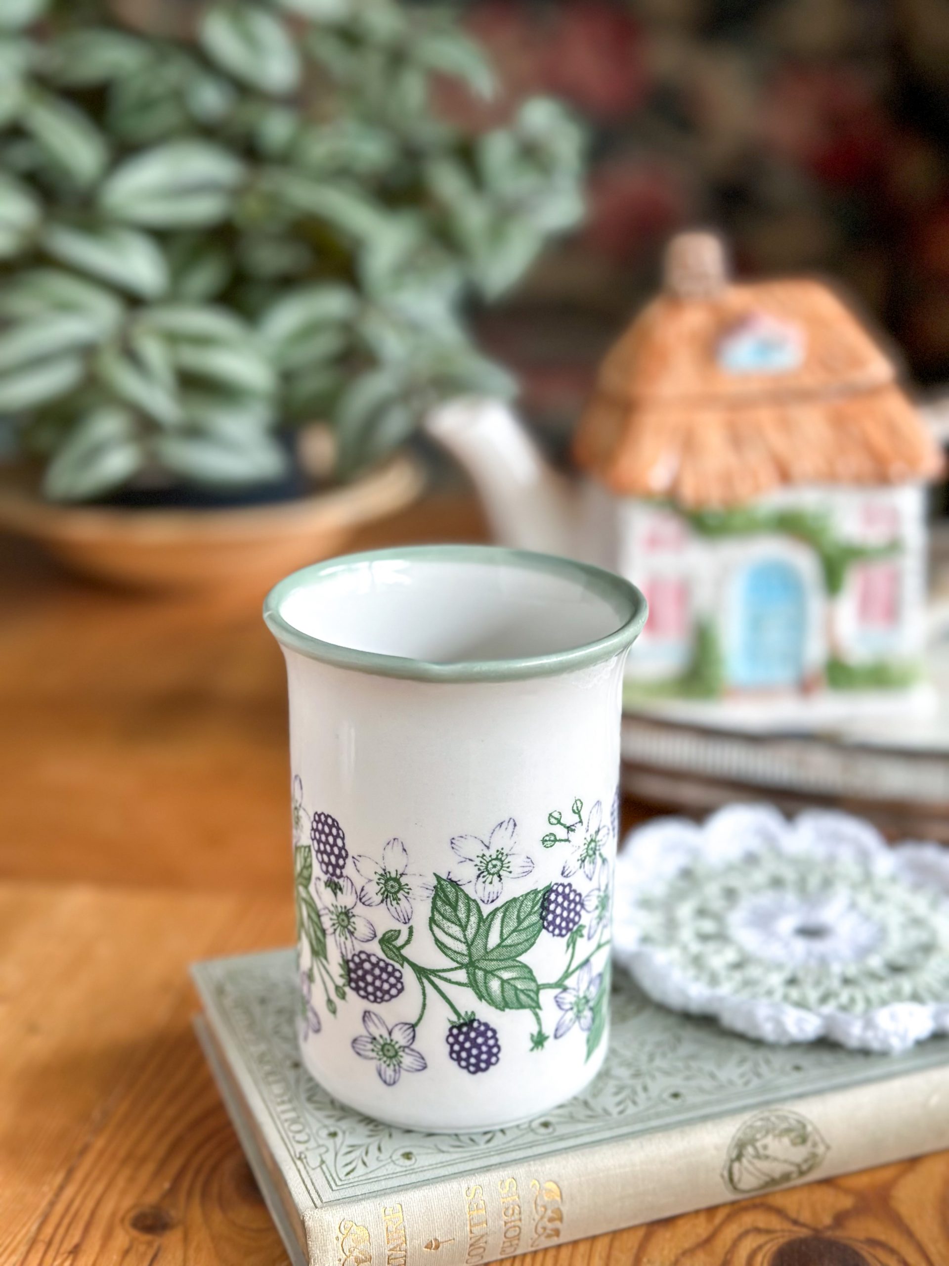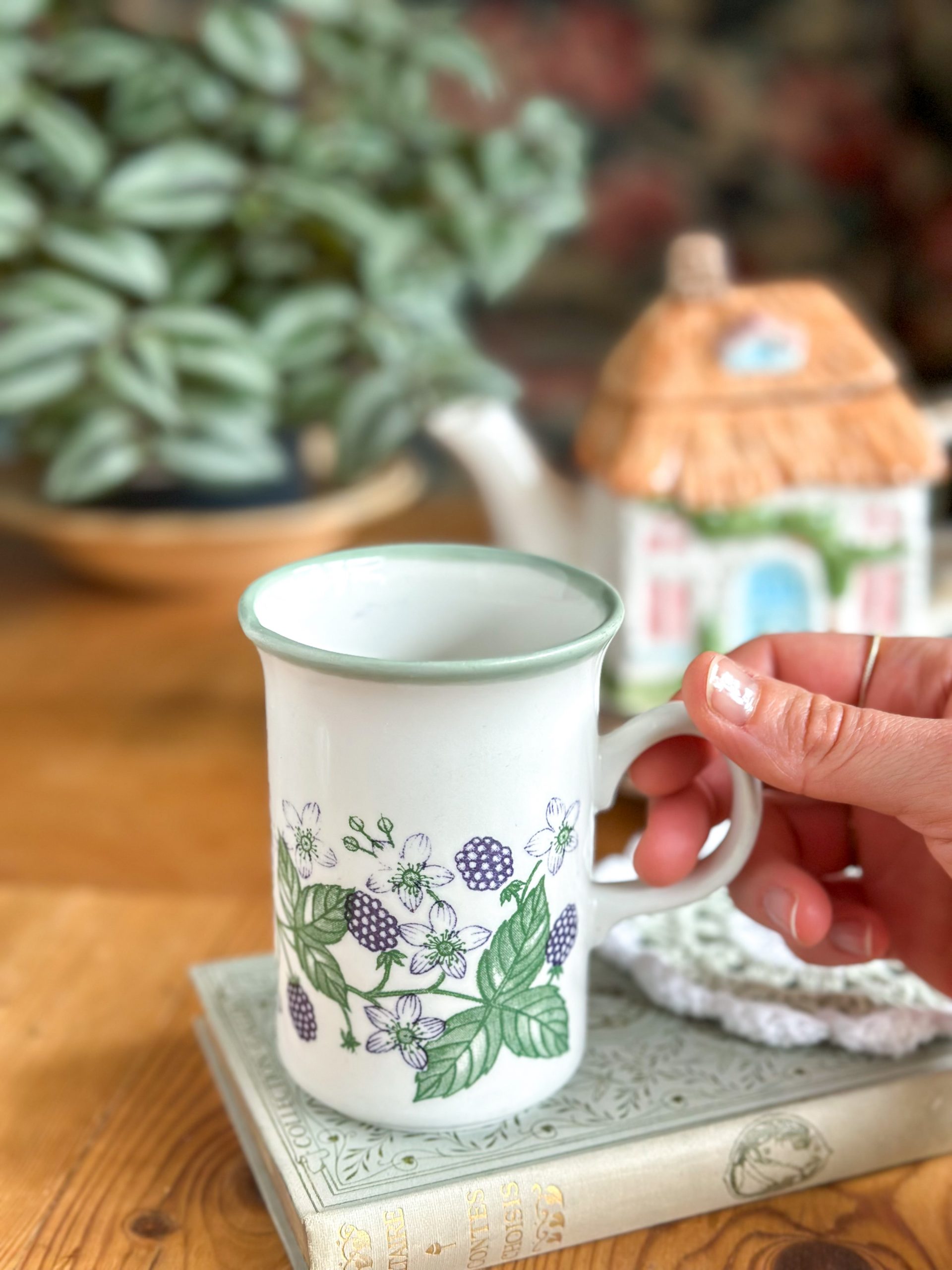 Un joli mug anglais vintage ! On aime beaucoup son joli décor avec des mûres aux tons bleus et leurs feuillages. Un mug qui deviendra votre chouchou pour les pauses thé ou café !