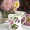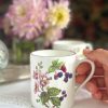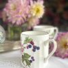 Cette tasse vintage est joliment décorée de petites mûres avec leurs feuilles et fleurs.