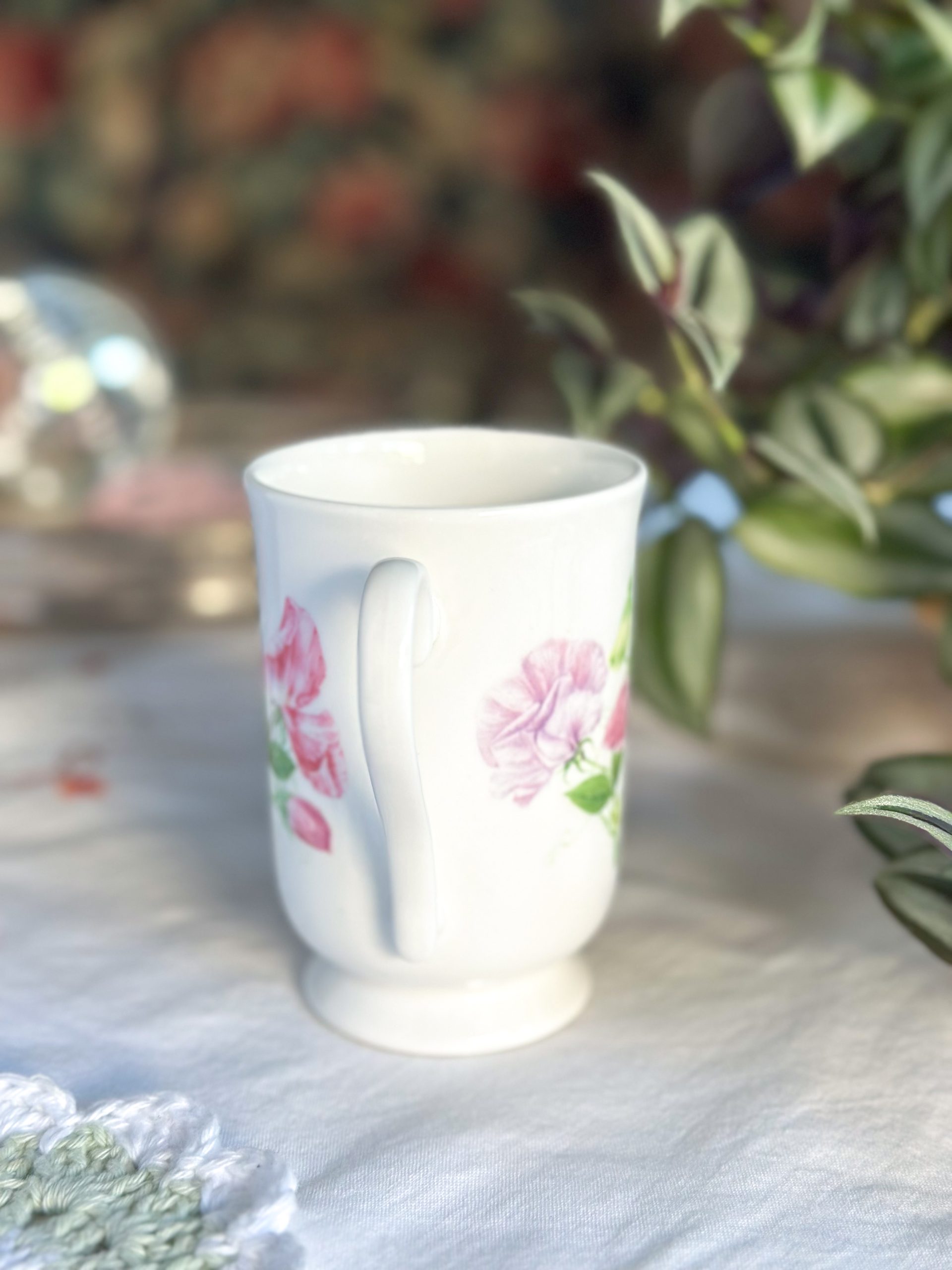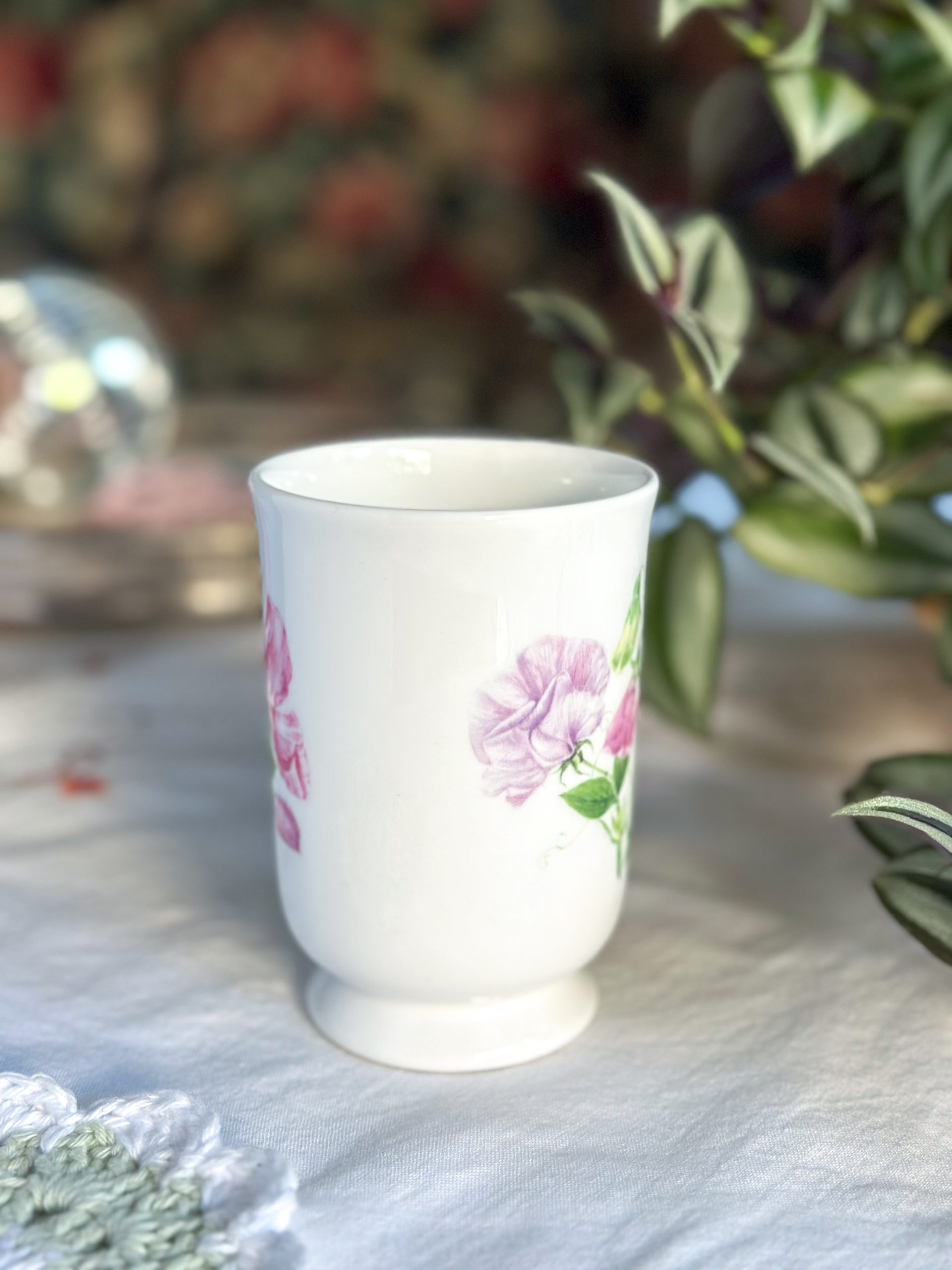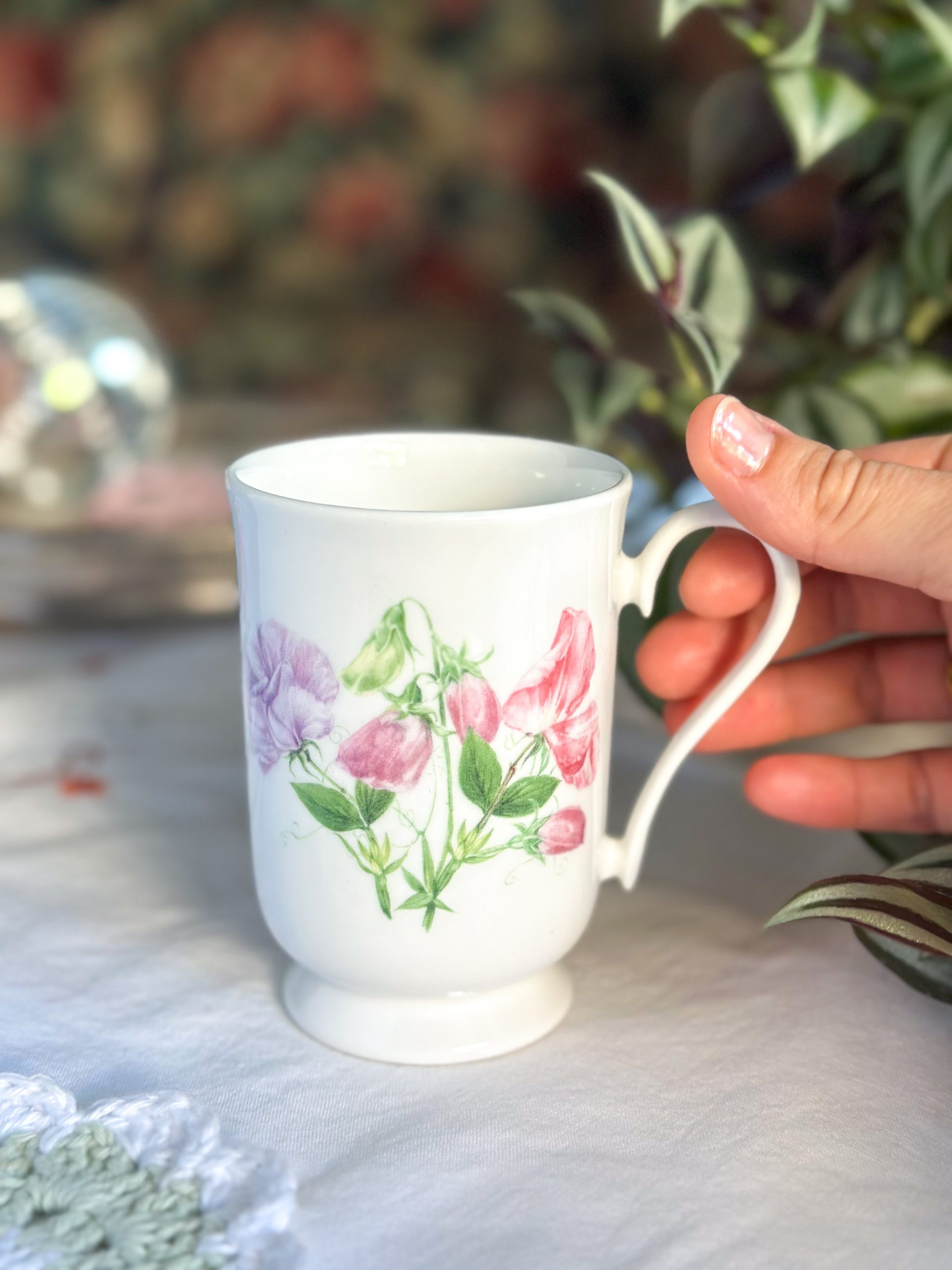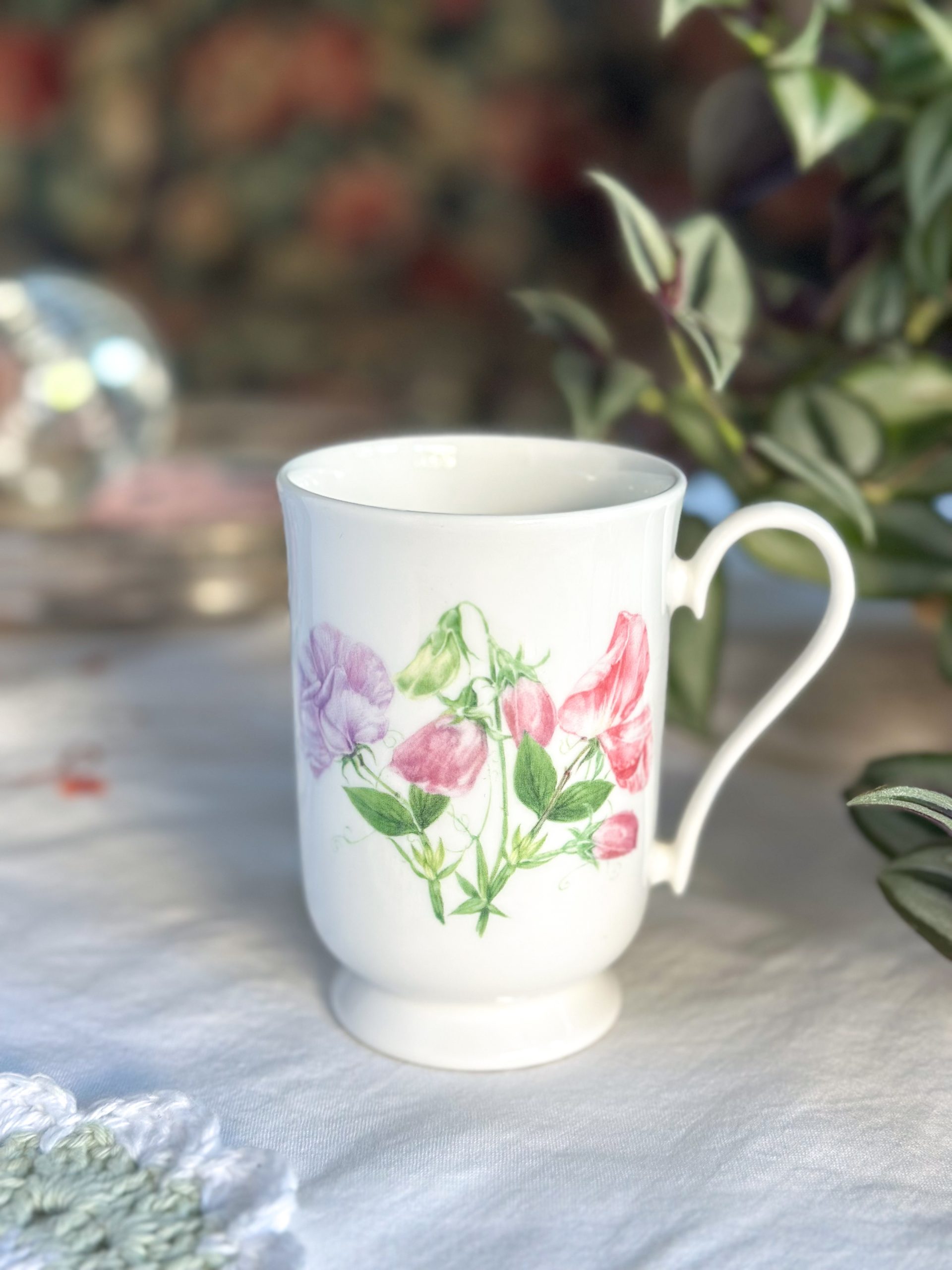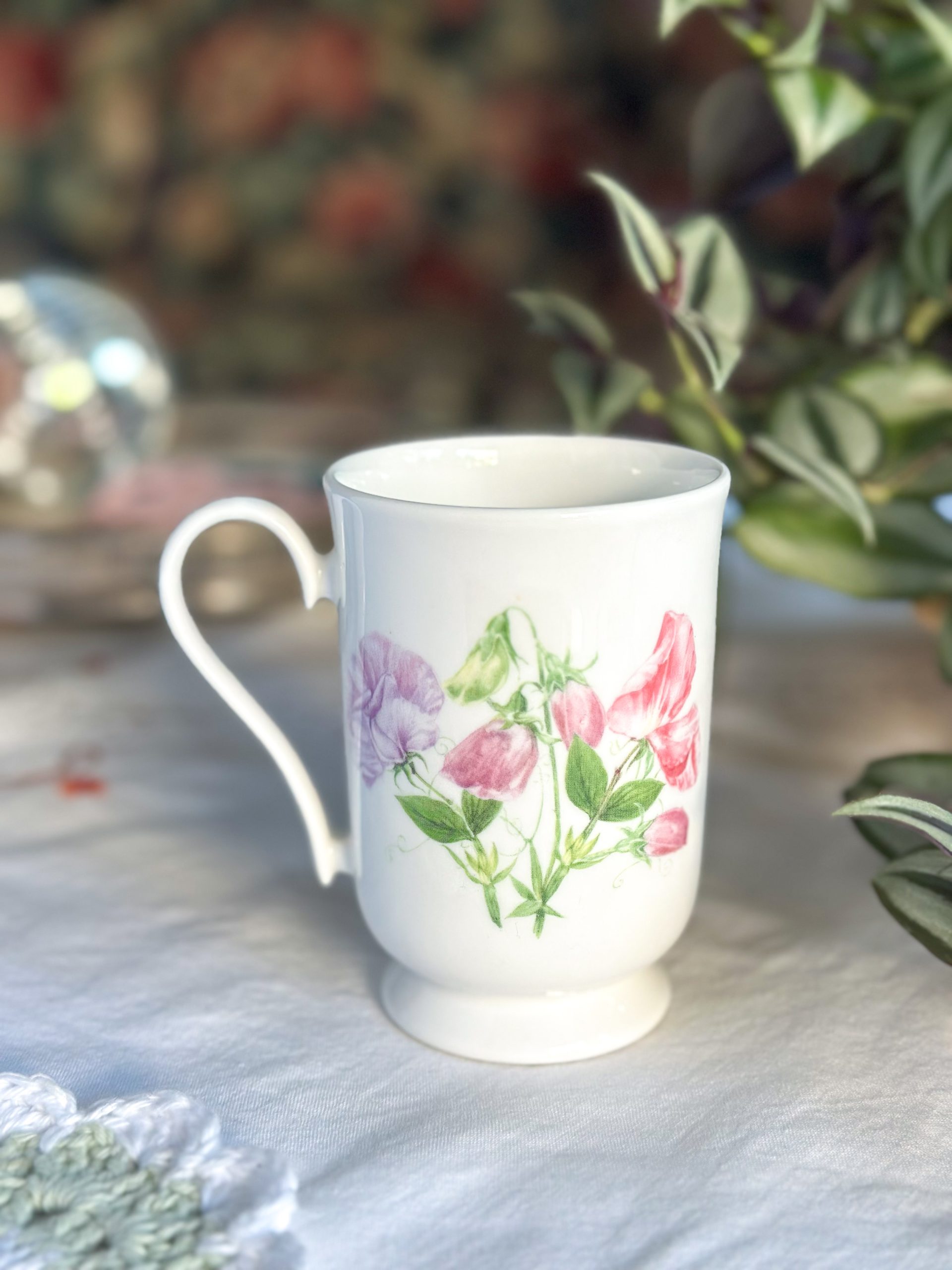 Superbe tasse anglaise ! On adore ses dessins remplis de délicatesse avec ces pois de senteurs aux tons pastels. Une grande tasse parfaite pour des moments thé ou café remplis de poésie.
