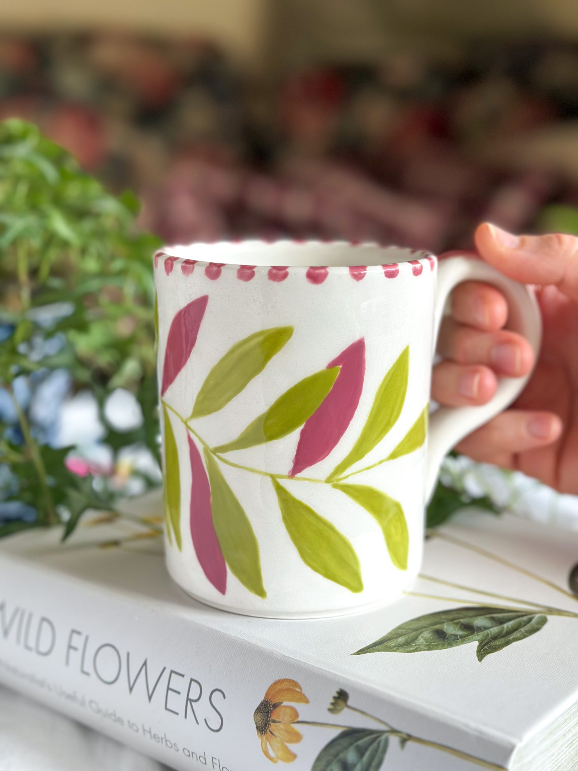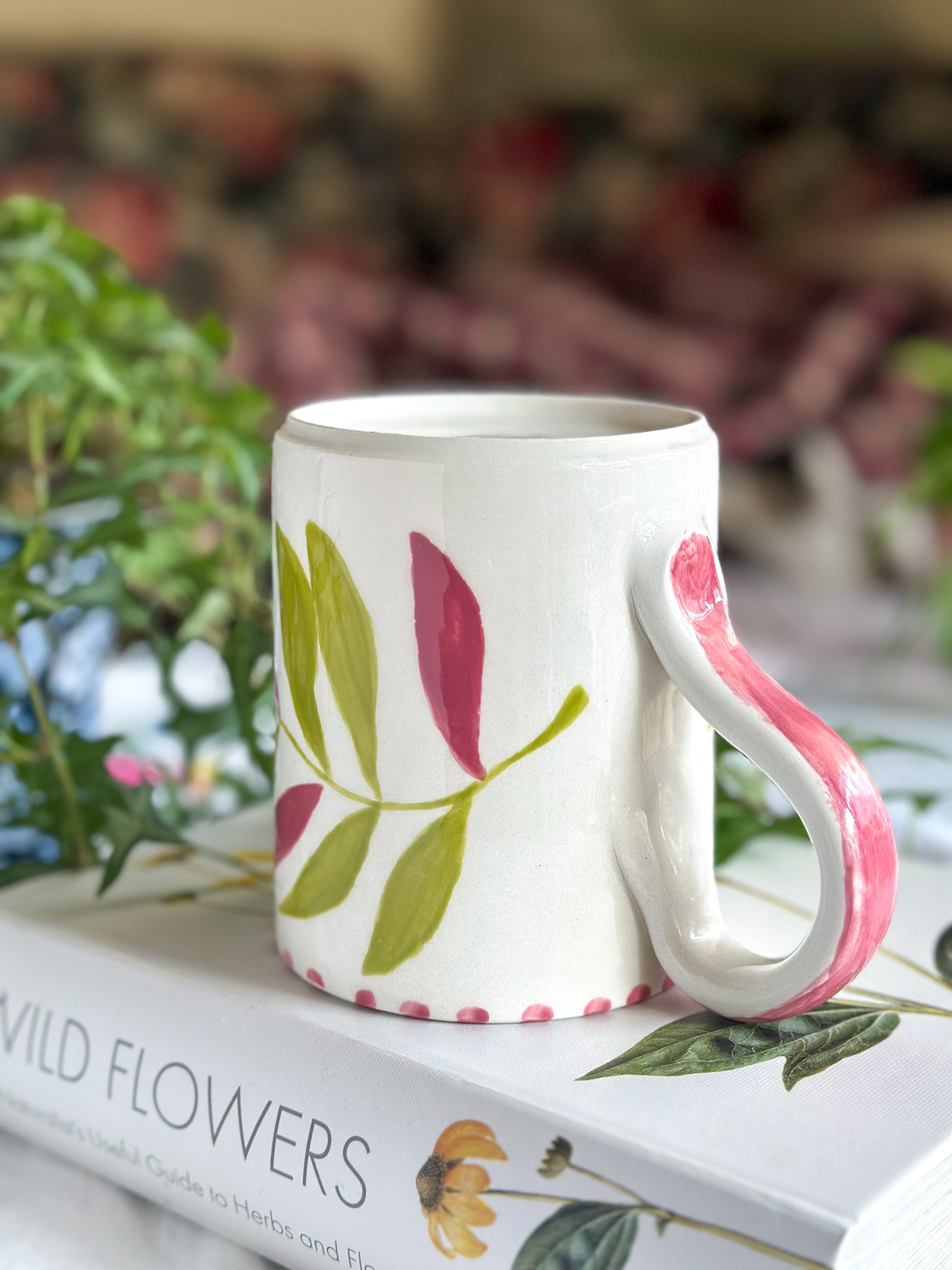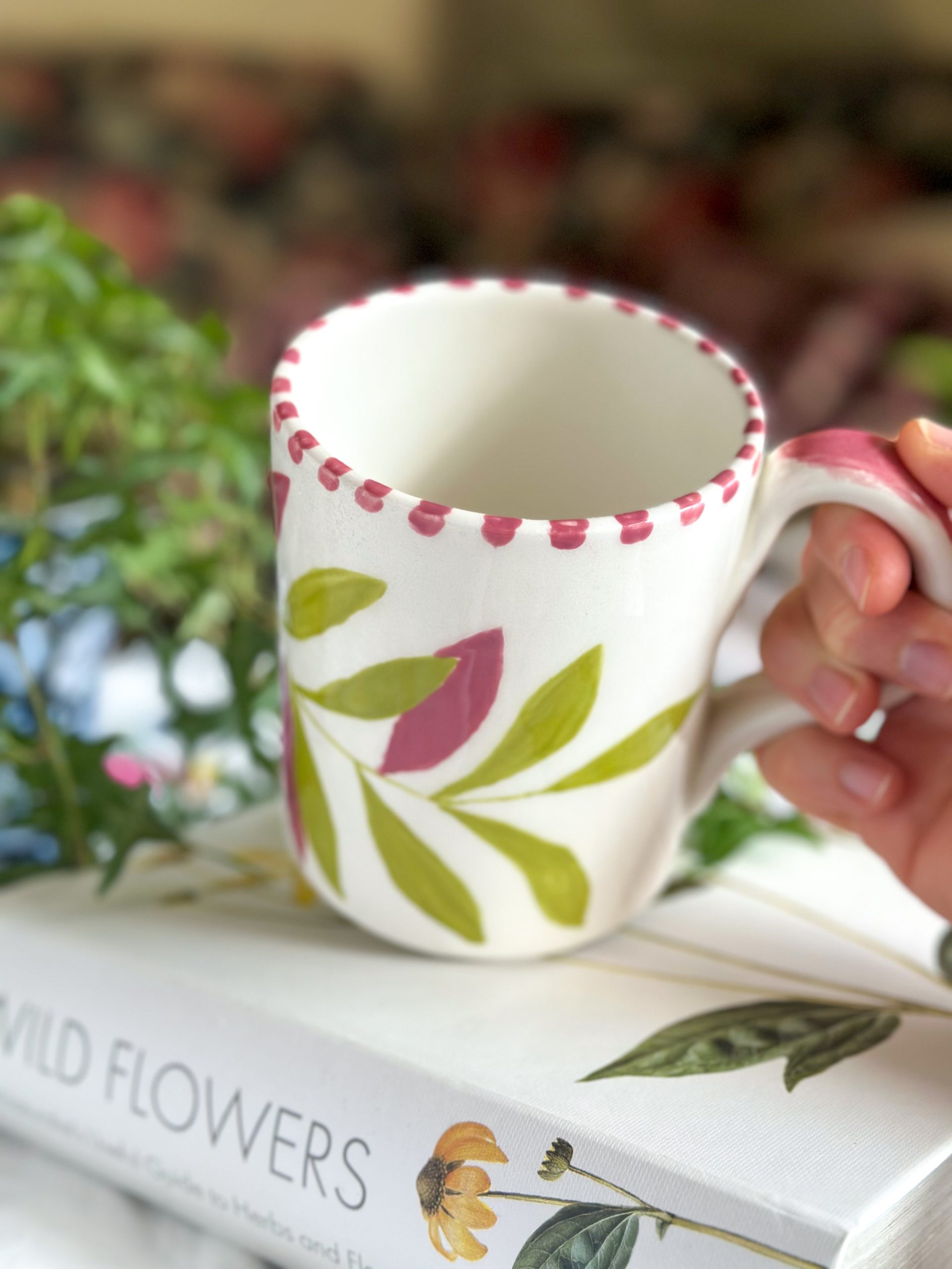 Superbe mug artisanal ! On adore son motif feuillage peint tout autour. Une grande tasse toute en poésie, au format généreux et qui sera parfaite pour toutes vos boissons chaudes !