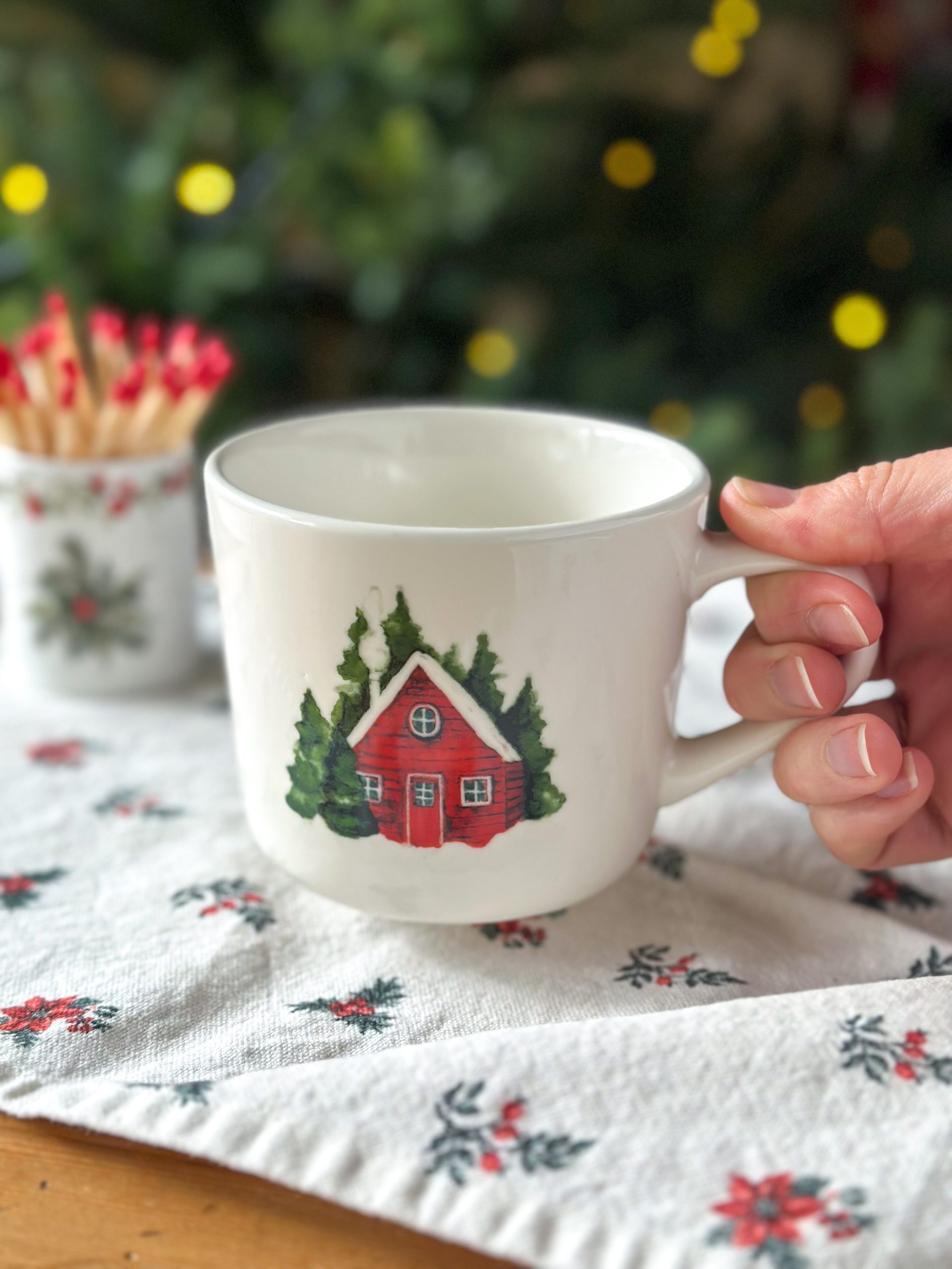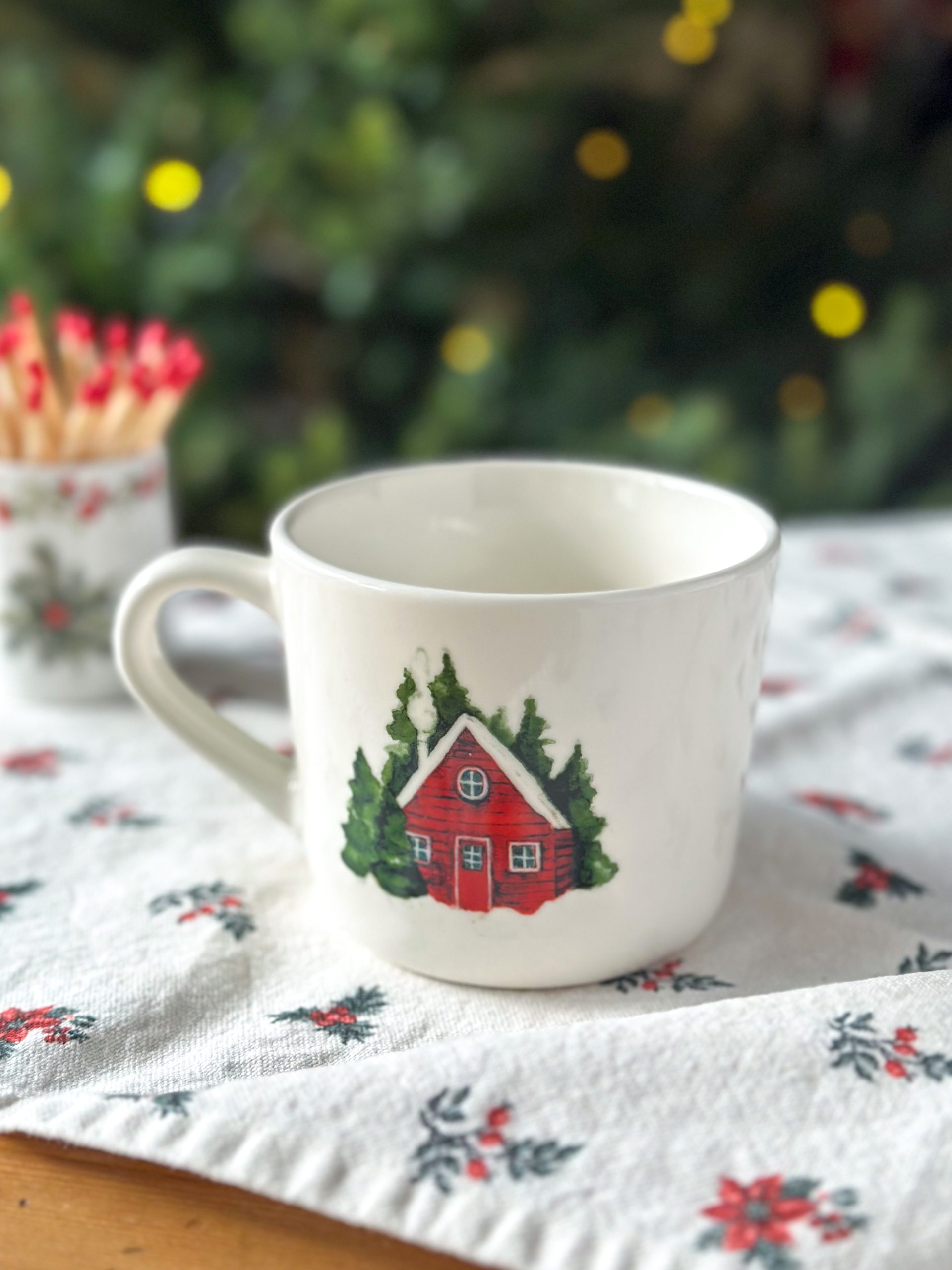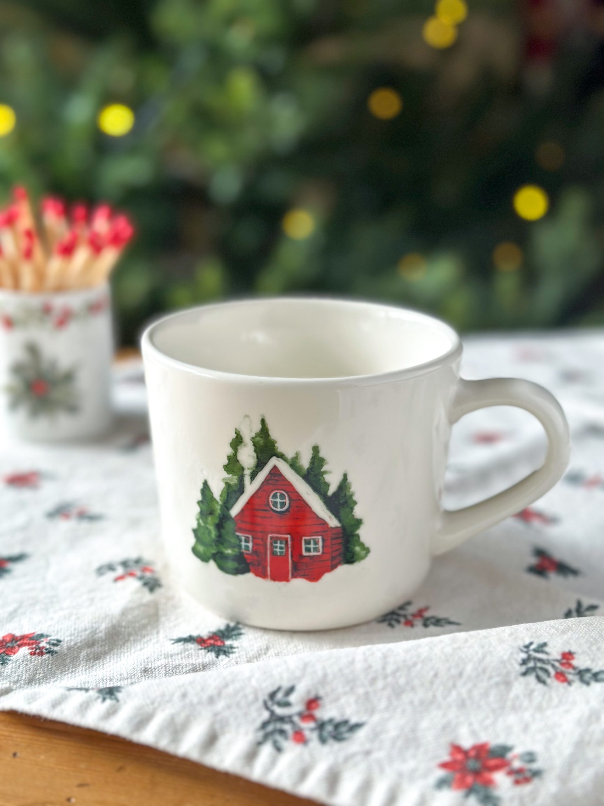 Coup de coeur pour ce mug d’Hiver ! On adore son dessin d’une jolie cabane rouge au milieu de la forêt (imprimé des deux côtés).