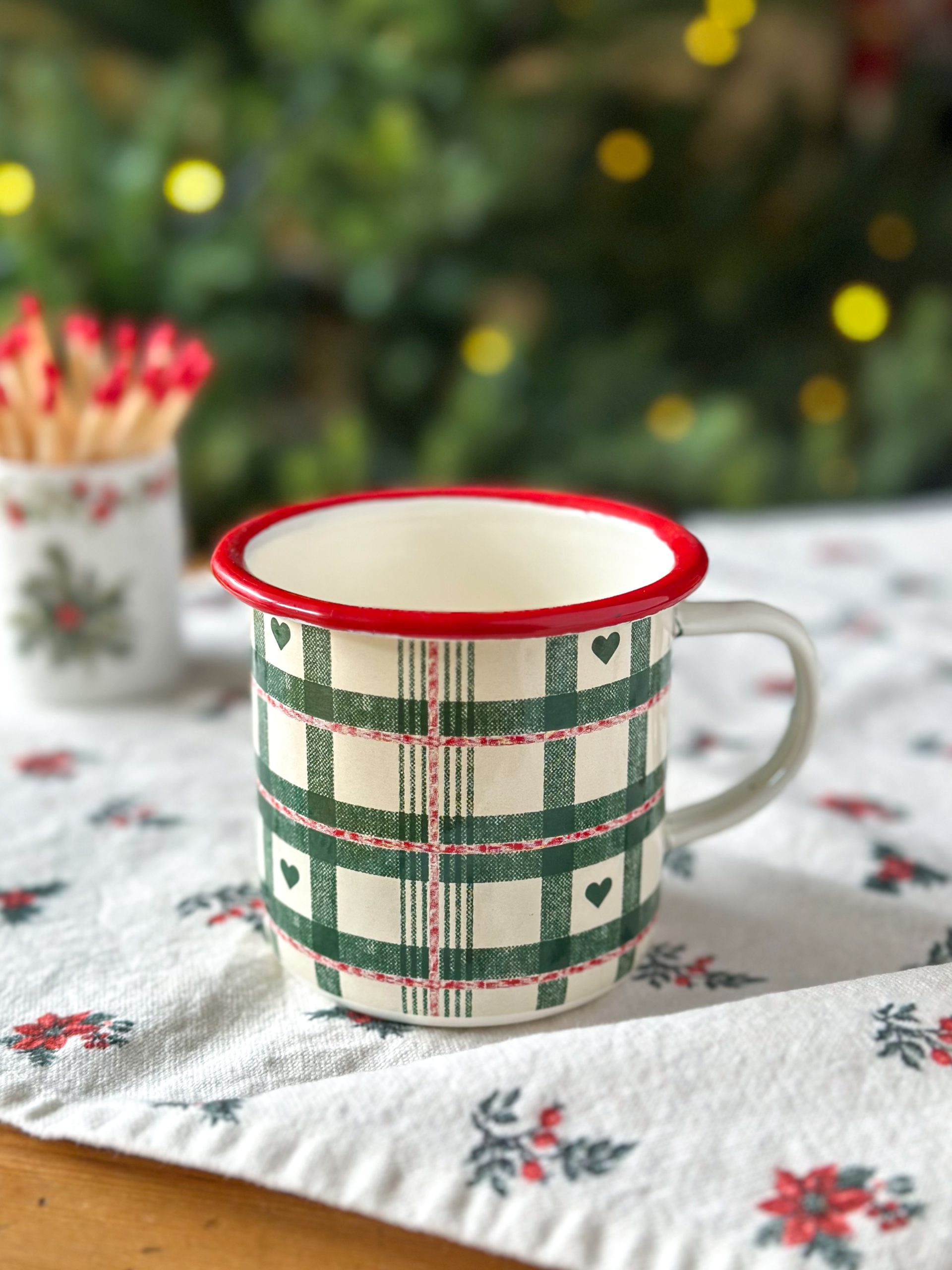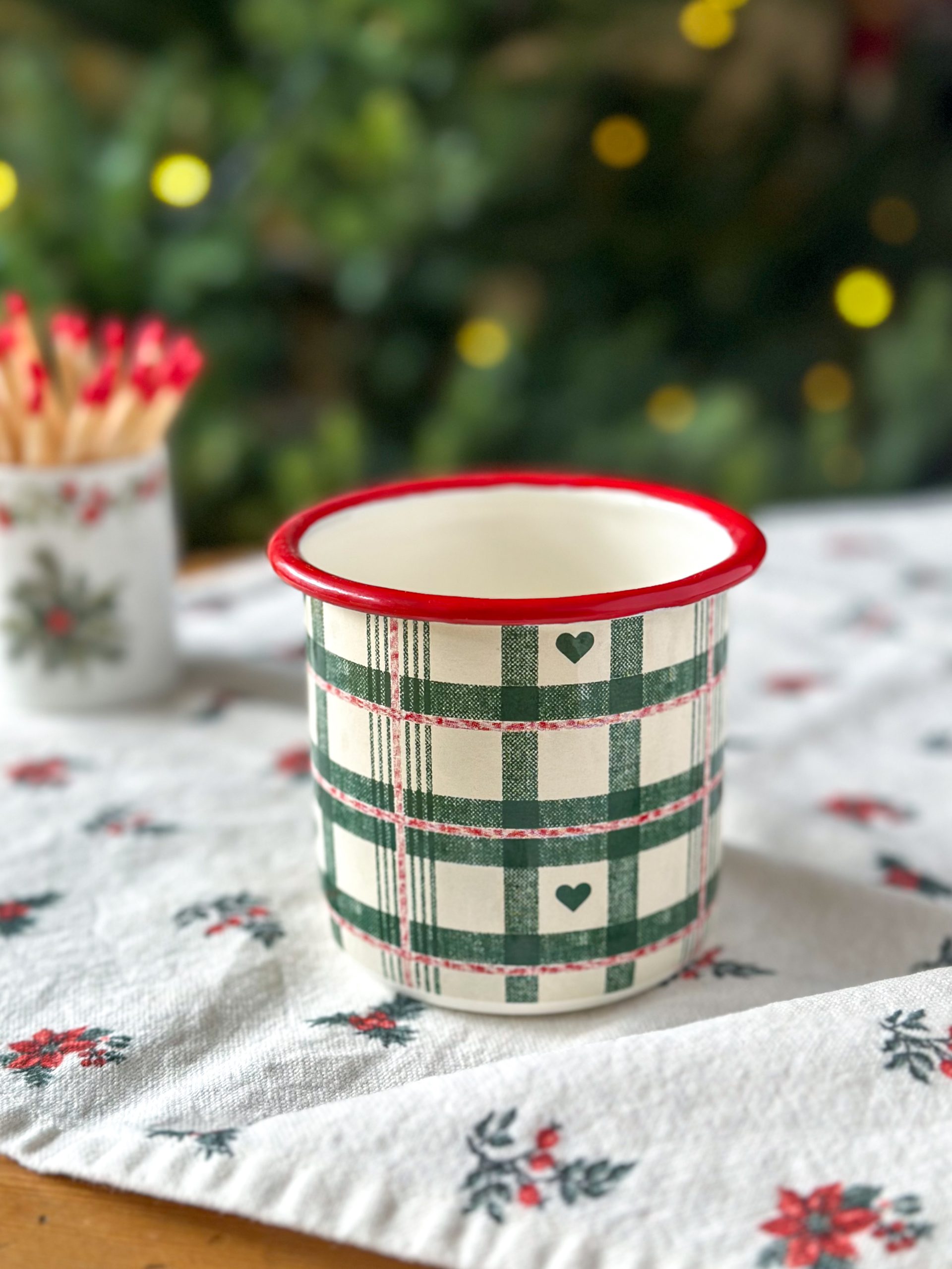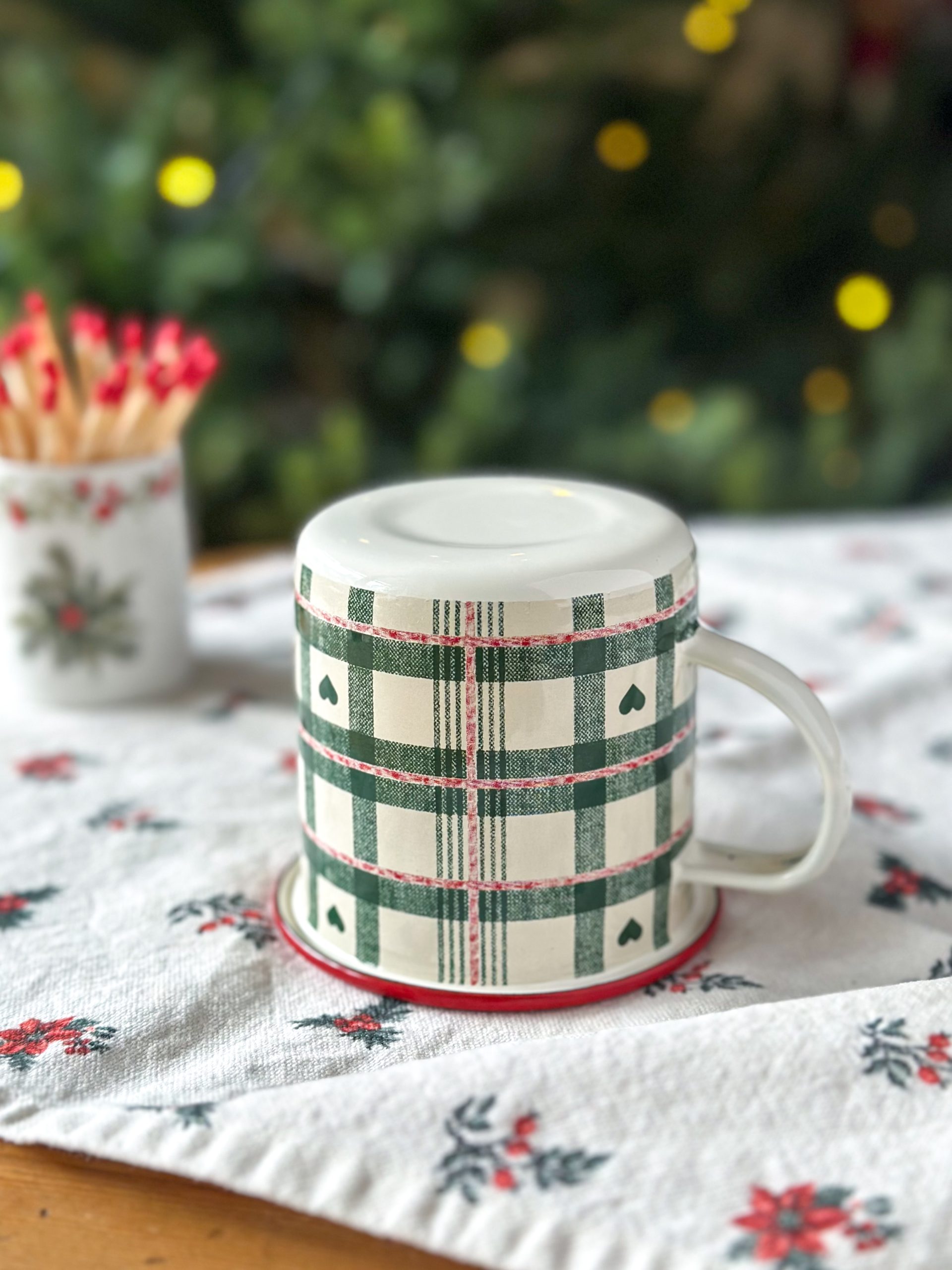 Pépite ! Ce mug de Noël au motif tartan vert est un indispensable pour vos jolies boissons gourmandes de la saison ! On adore l’aspect vintage de son motif et la légèreté du métal émaillé.