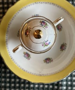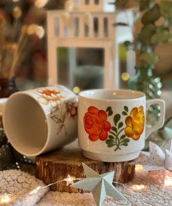 1 mug en faïence Bavaria beige moucheté et grosse fleur bleu marron