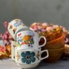 Mug en grès émaillé motif fleur bleue