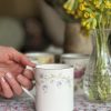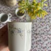 Un magnifique mug en porcelaine anglaise fine ! Ses dessins de myosotis aux tons très doux, son liseré doré, et la finesse de sa anse le rendent très élégant.