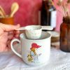 Joli mug rempli de poésie ! On aime beaucoup le dessin de ce mug vintage, une fille au joli chapeau coloré qui cueille des fleurs des champs. Un mug plein de nostalgie et de douceur.