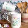 Superbe mug en porcelaine anglaise ! On adore son décor de fleurs champêtres tout en douceur avec ses tons pastels, et son rappel fleuri à l’intérieur. Un mug qui deviendra votre chouchou pour vos pauses thé ou café !