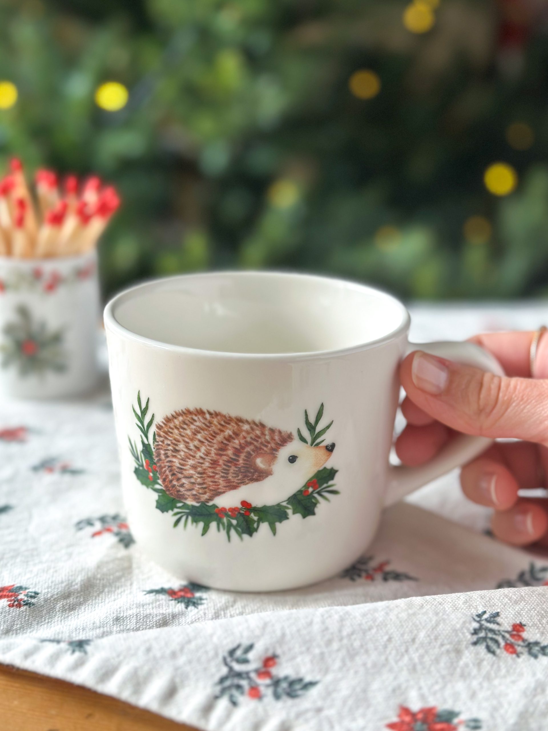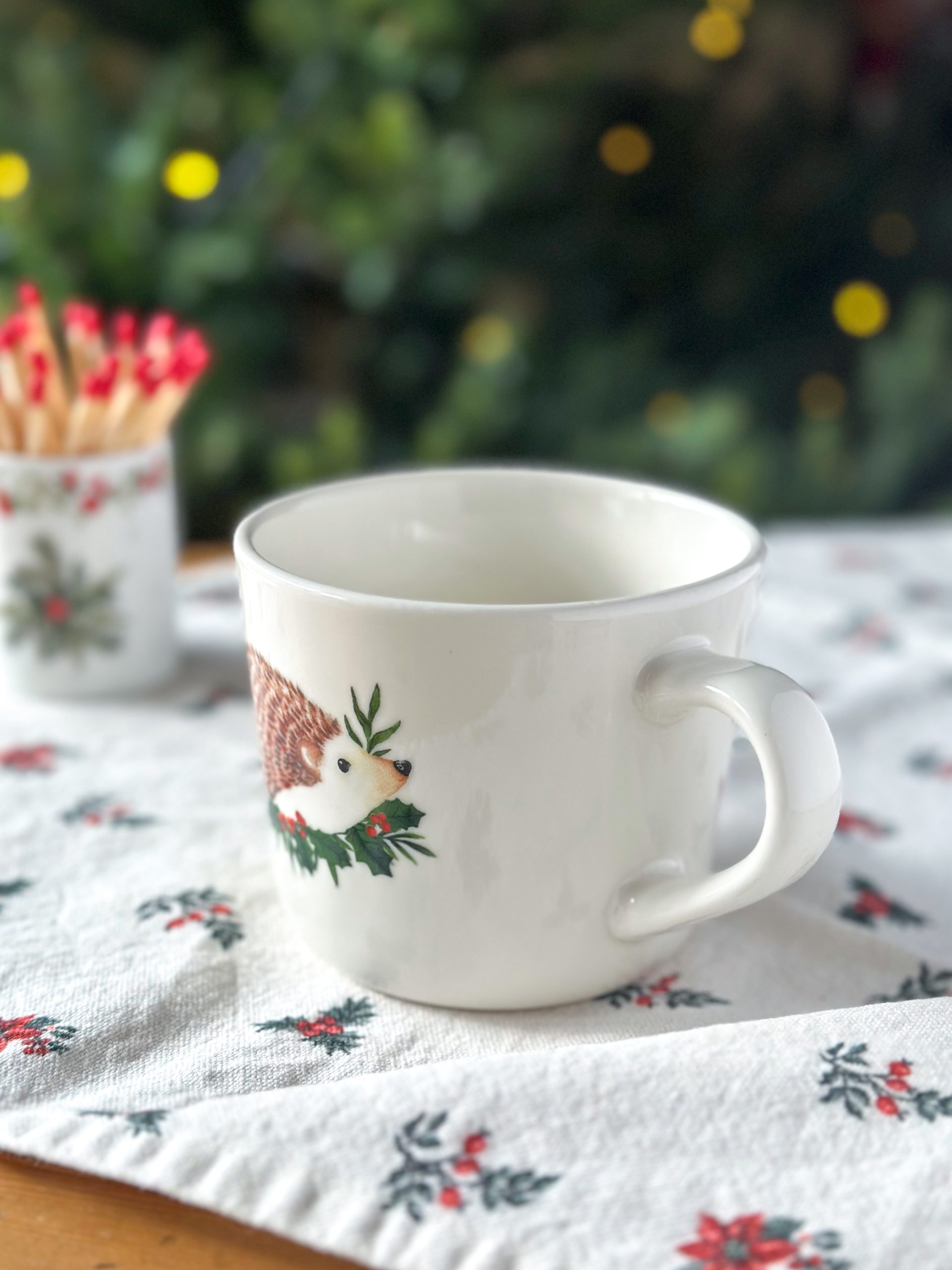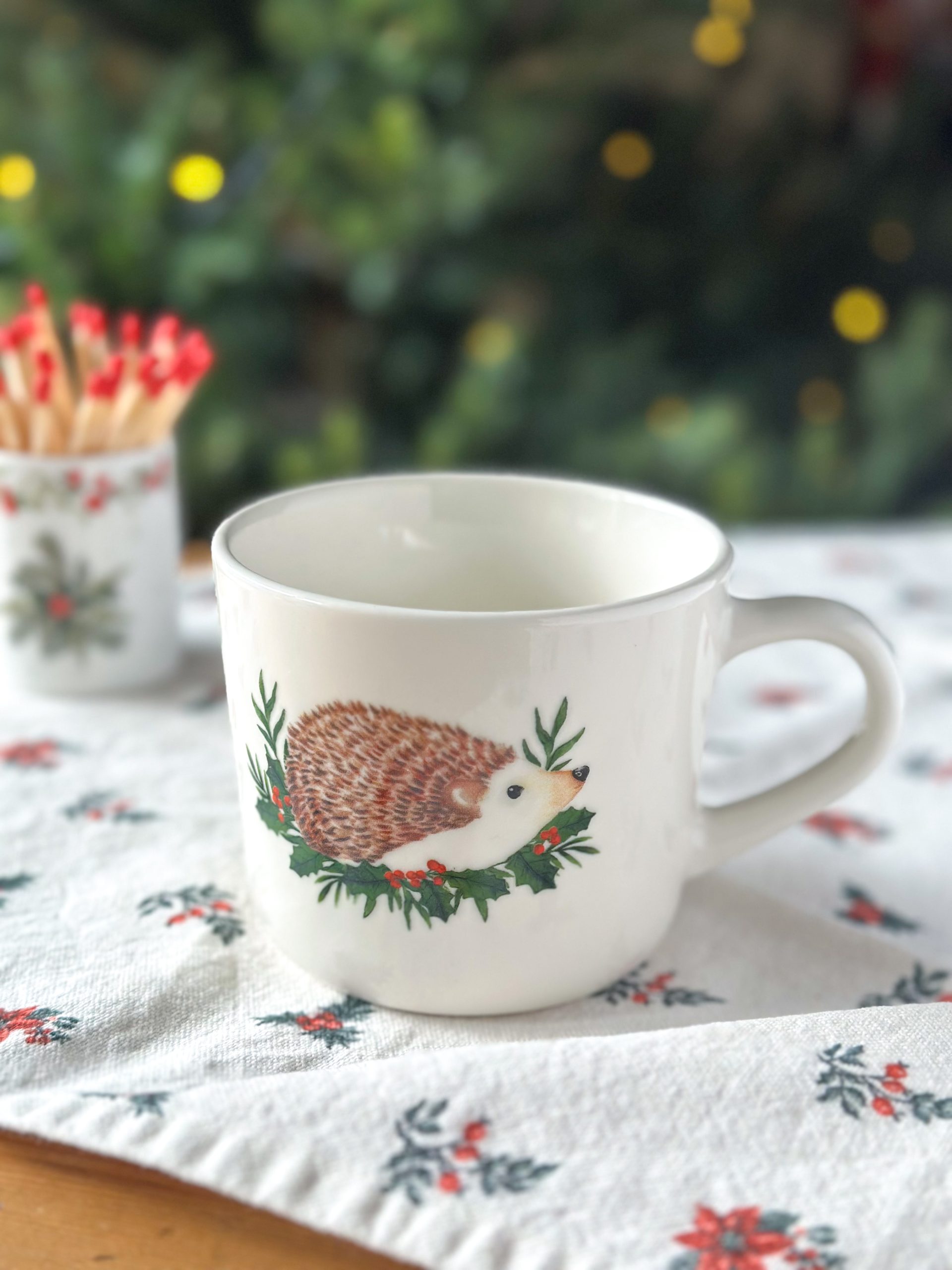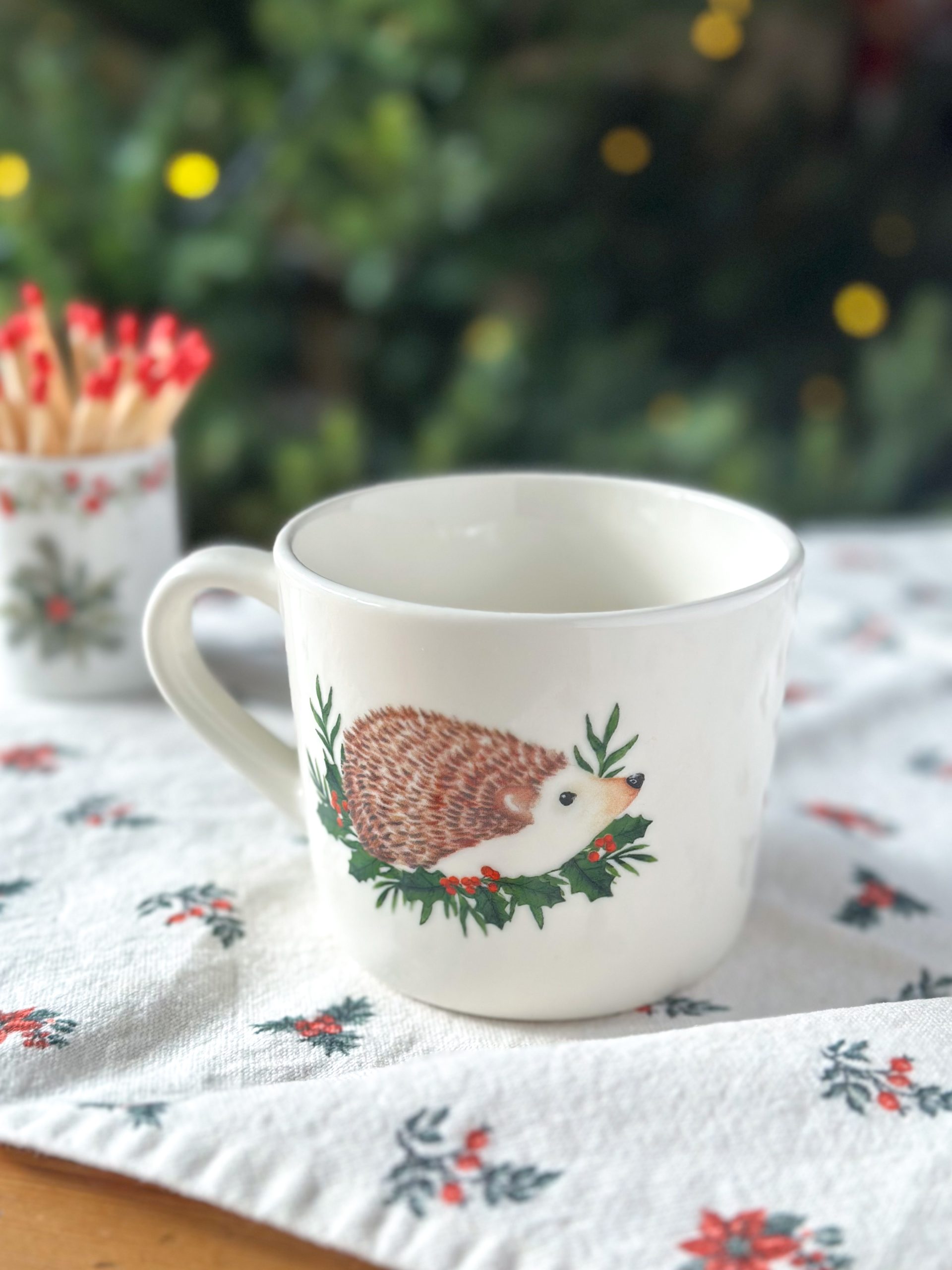 Coup de coeur pour ce mug d’Hiver ! On adore son dessin d’un hérisson posé sur des branches de houx (imprimé des deux côtés).