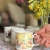 Ce magnifique mug en porcelaine anglaise fine deviendra votre chouchou pour vos pauses thé ou café ! Avec ses jolis dessins de primevères jaunes, son rappel à l’intérieur et sur la anse, il est très élégant.