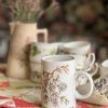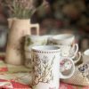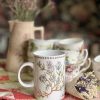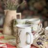 Joli mug en porcelaine vintage et dessin botanique de Romarin en fleurs (inscription Rosemary).