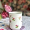 Superbe tasse au format mug ! On adore sa jolie forme, parsemée de roses et réhaussée d’un liseré vert au buvant et sur la anse.