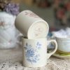 Un très beau mug en porcelaine vintage ! On adore ses jolis dessins de roses, faits au pochoir. Il a une très jolie anse et un dessin en rappel à l’intérieur. Ce joli mug existe en 2 coloris : rose ou bleu.